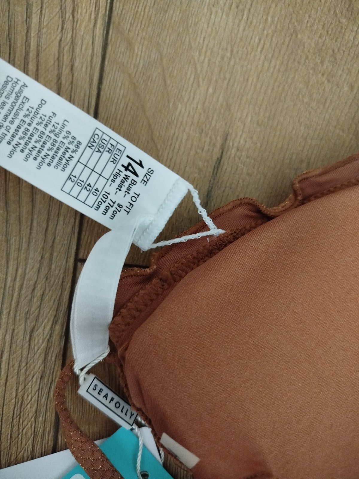 Nové značka seafolly veľkosť 40 príjemná hnedá prešívaná zlatou niťou na viazanie vypchavky sa dajú vybrať
