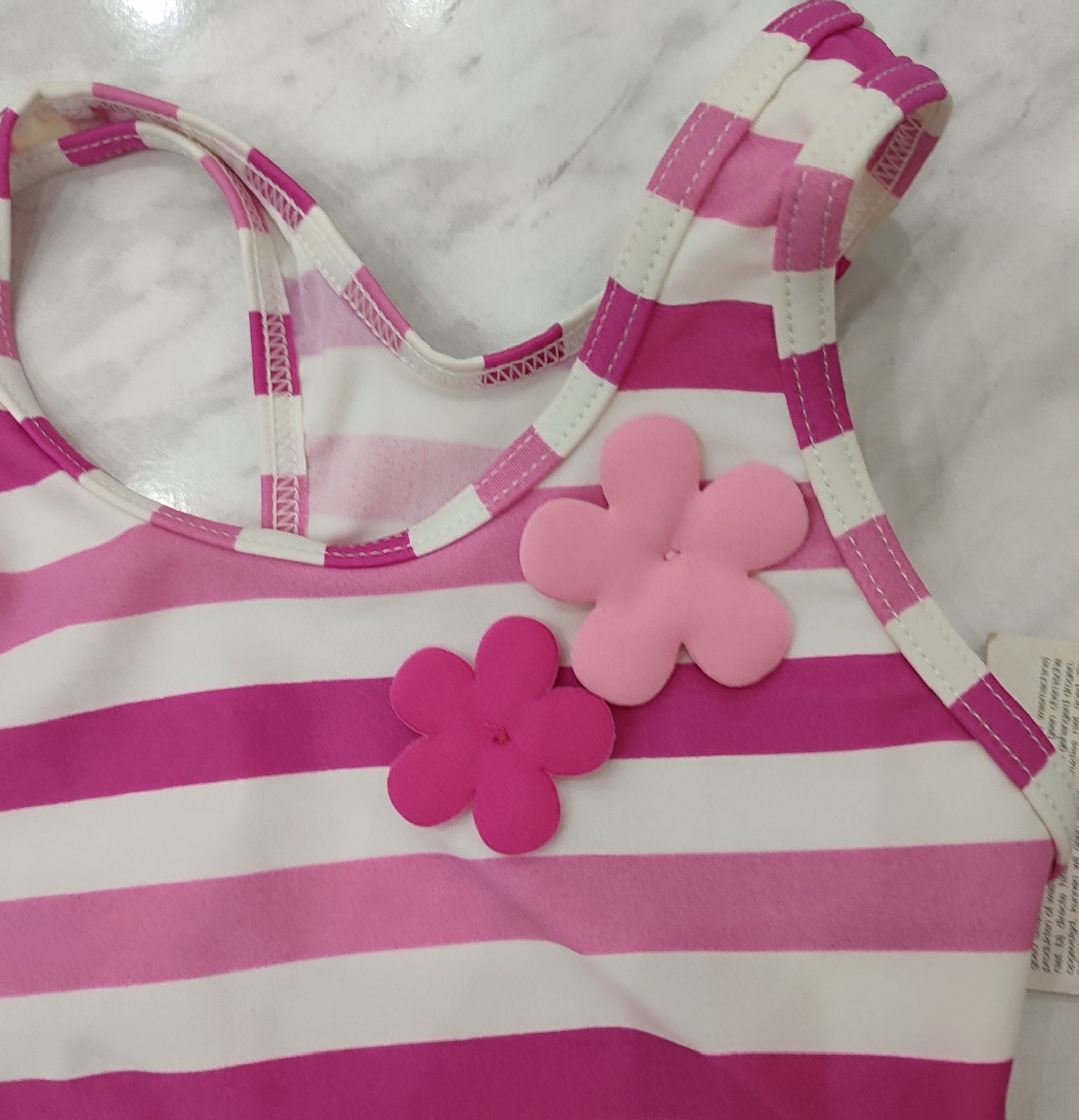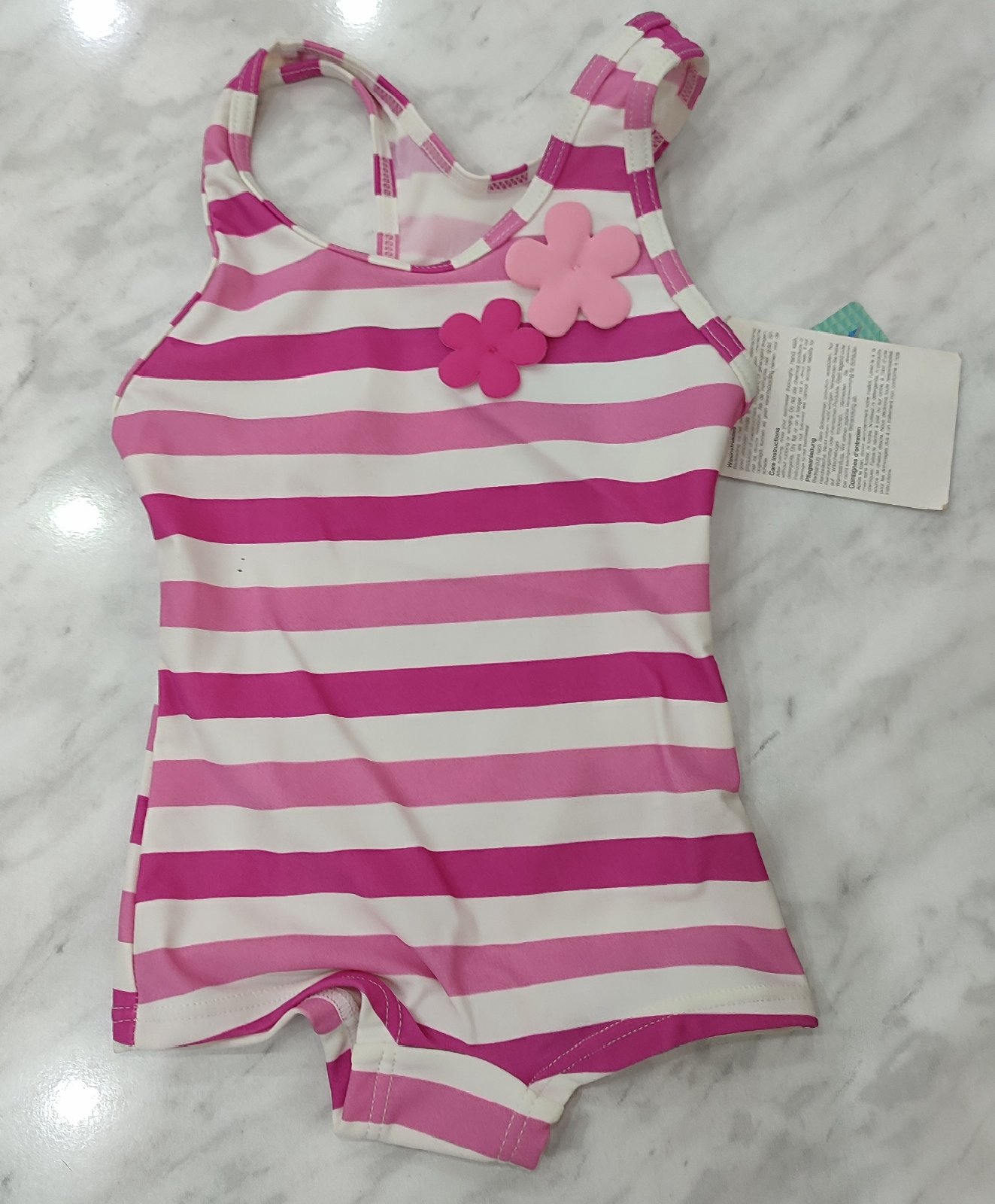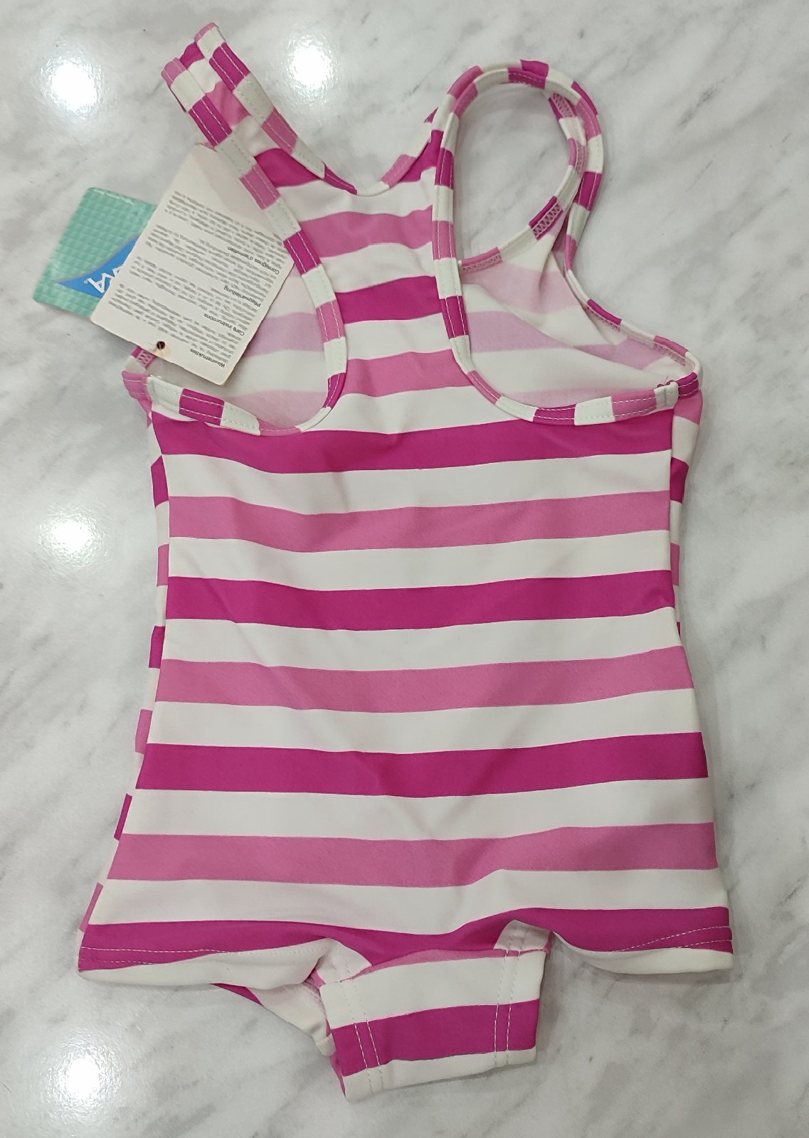 Predám tieto čisto nové a kvalitné plavky, len na ľavej strane sú dve čierne bodky. Veľkosť je 74, sú vhodné na 6-9 mesiacov. Značka DIRKJE. Zloženie: 80% polyamid a 20% elastan. Cena 3€.