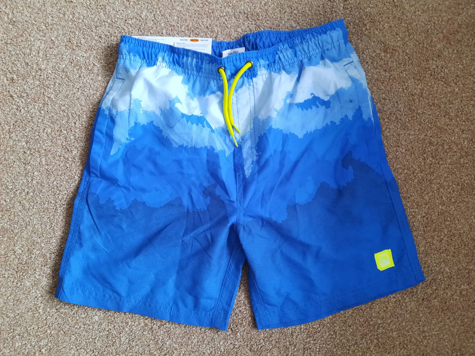 Trenkove plavky, nosene, dobry stav. Vyhoda -vrecka na zips. Funkcna snurka v pase. Rozmery: pas 2x 33-40cm, bok 35cm Velkost 146, 11yrs Postovne a balne: podla cennika posty