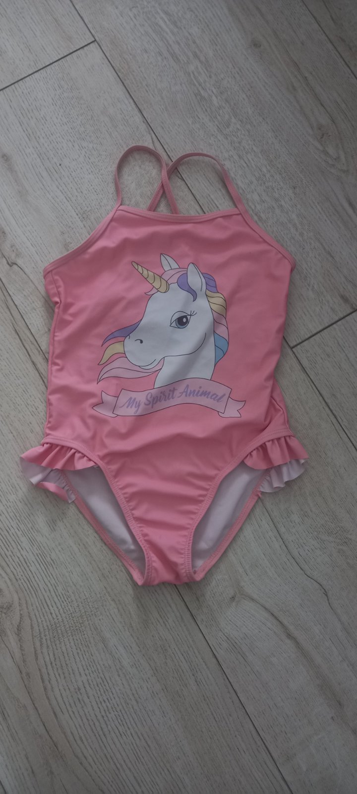 Farebne plavky v ruzovom tone, so spagetovymi ramienkami. Velkost 116/122.