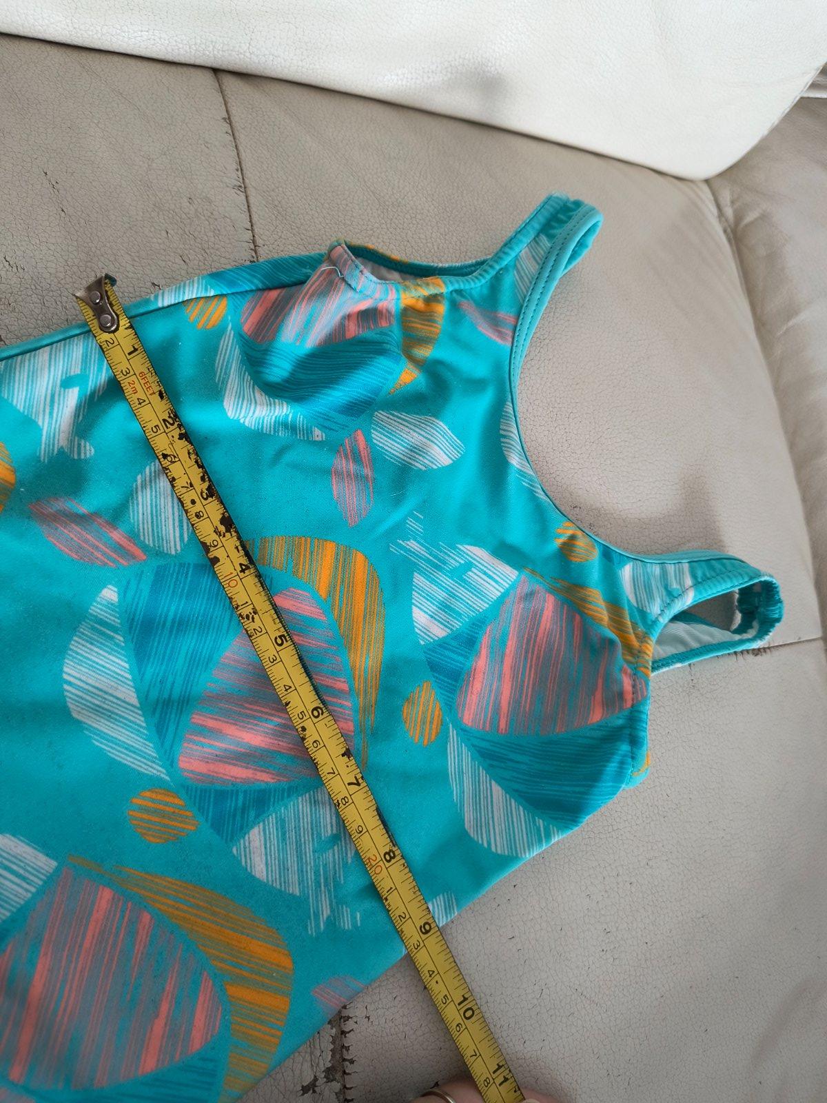 Nosené, v peknom stave. Veľkosť skôr 98, rozmery nafotené. Jemné minizmolky na ritke. S volánikmi, s UV filtrom 50.
