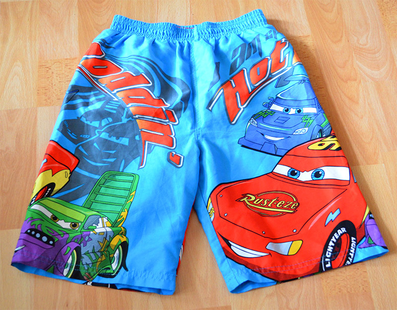 Chlapcenske plavky, plavkove kratasy Cars, od zn. Disney / Pixar, uved. vel. 122/128 (6-8 r.). Vovnutri su sietovane nohavicky. V pase gumicka. S obrazkom - auto McQueen.