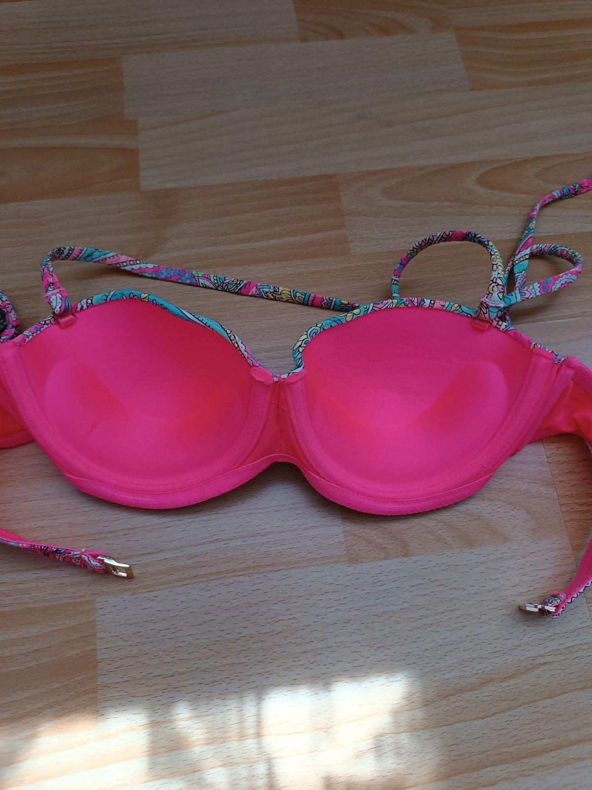 Veselá farebná kombinácia tureckého vzoru, dajú sa nosiť aj bez ramienok (majú silikónový pás na spodnom len pre lepšie uchytenie na koži). Bez poškodení. NEMERIAM! Sedia danej veľkosti (košíčky A push-up)