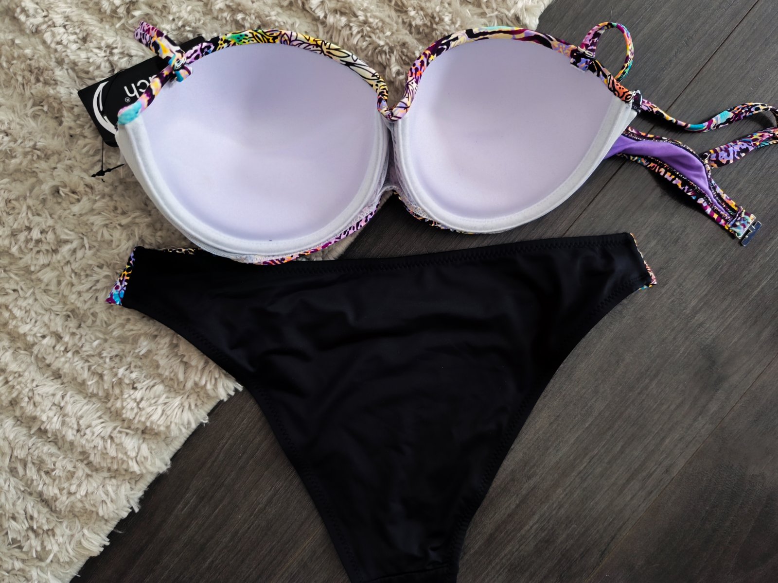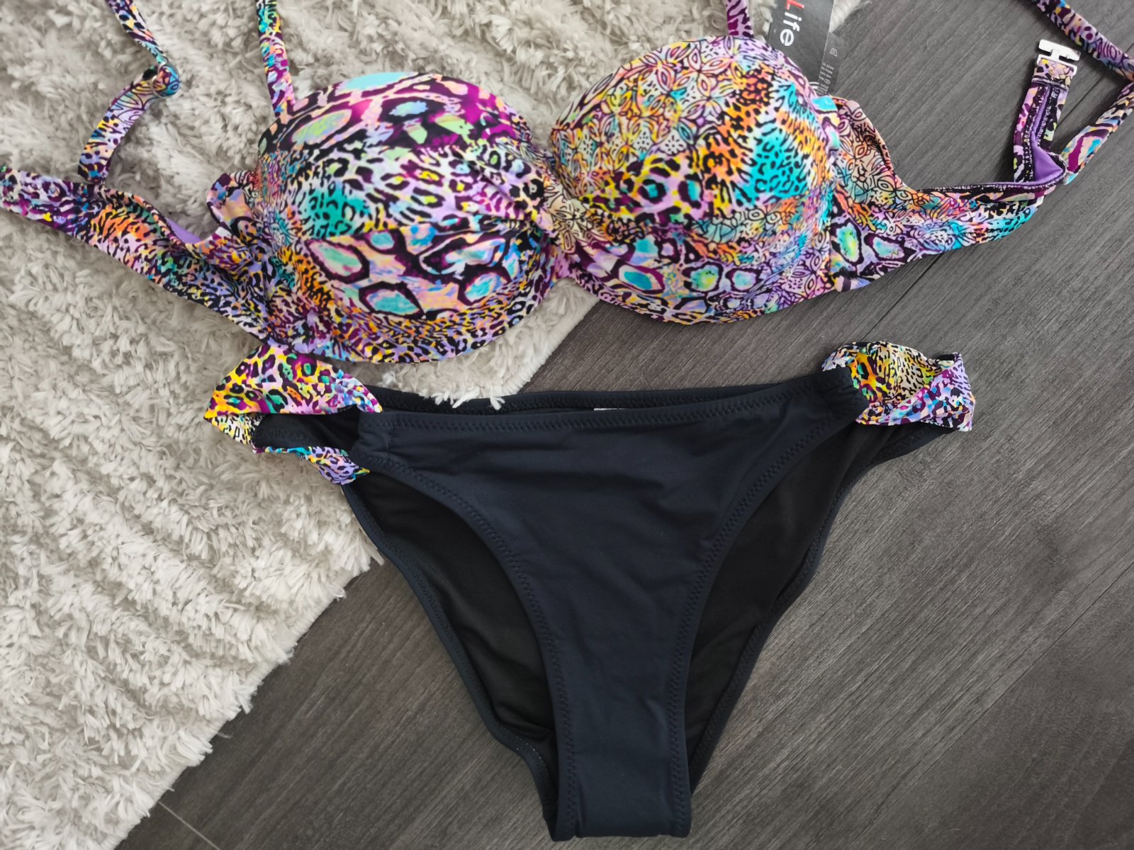 Vystužená podprsenka push up ramienka sú nastaviteľné a odnímateľné. Nohavičky klasického strihu.