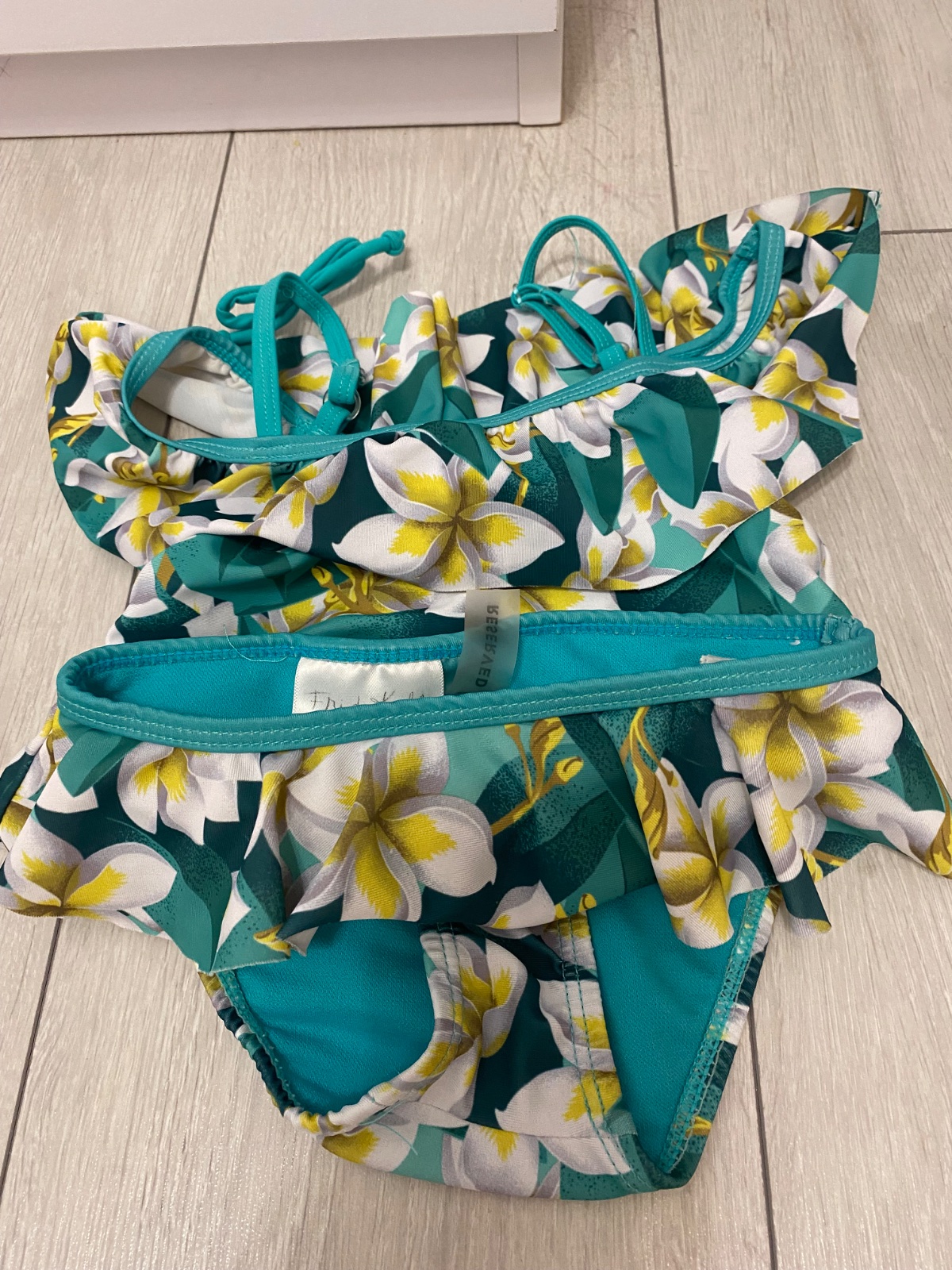 Spodný diel používaný je vyblednutý - viď foto. Vrchný diel takmer nepoužívaný. Je to zohľadnené v cene. Veľkosť 98/104. Cena je 2,99 € + poštovné