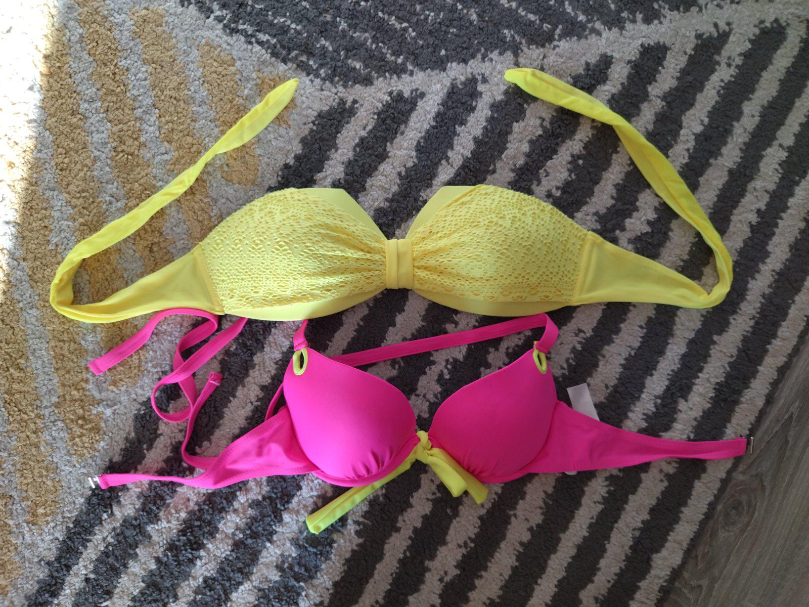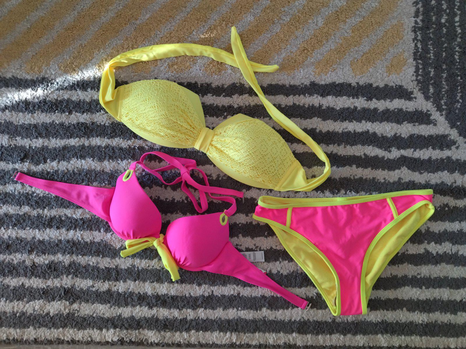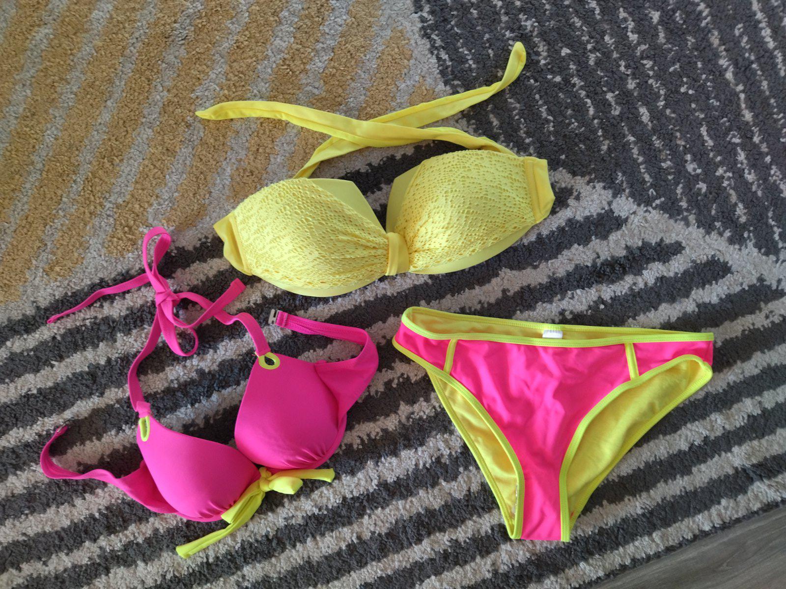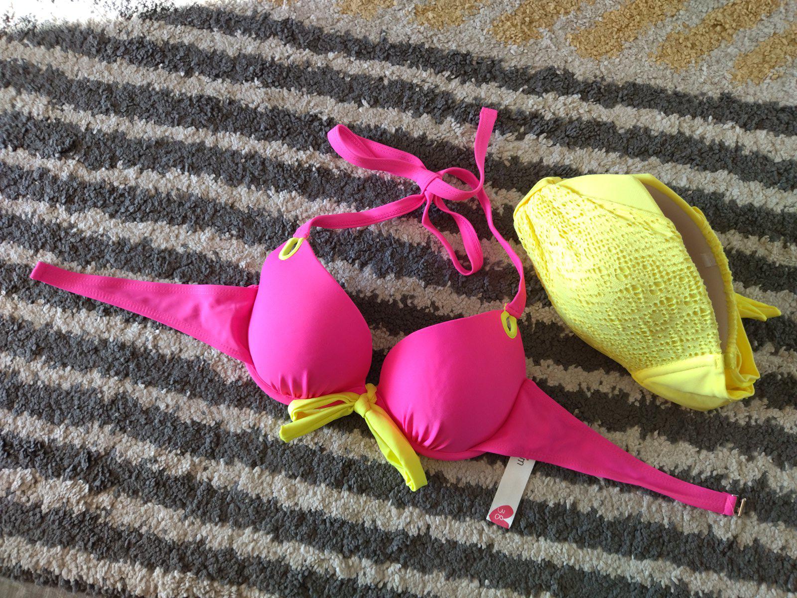 Nové nenosené, bez visačky, krásne krikľavé plavky, dopasované farebne k sebe, mne sedia na veľkosť 36