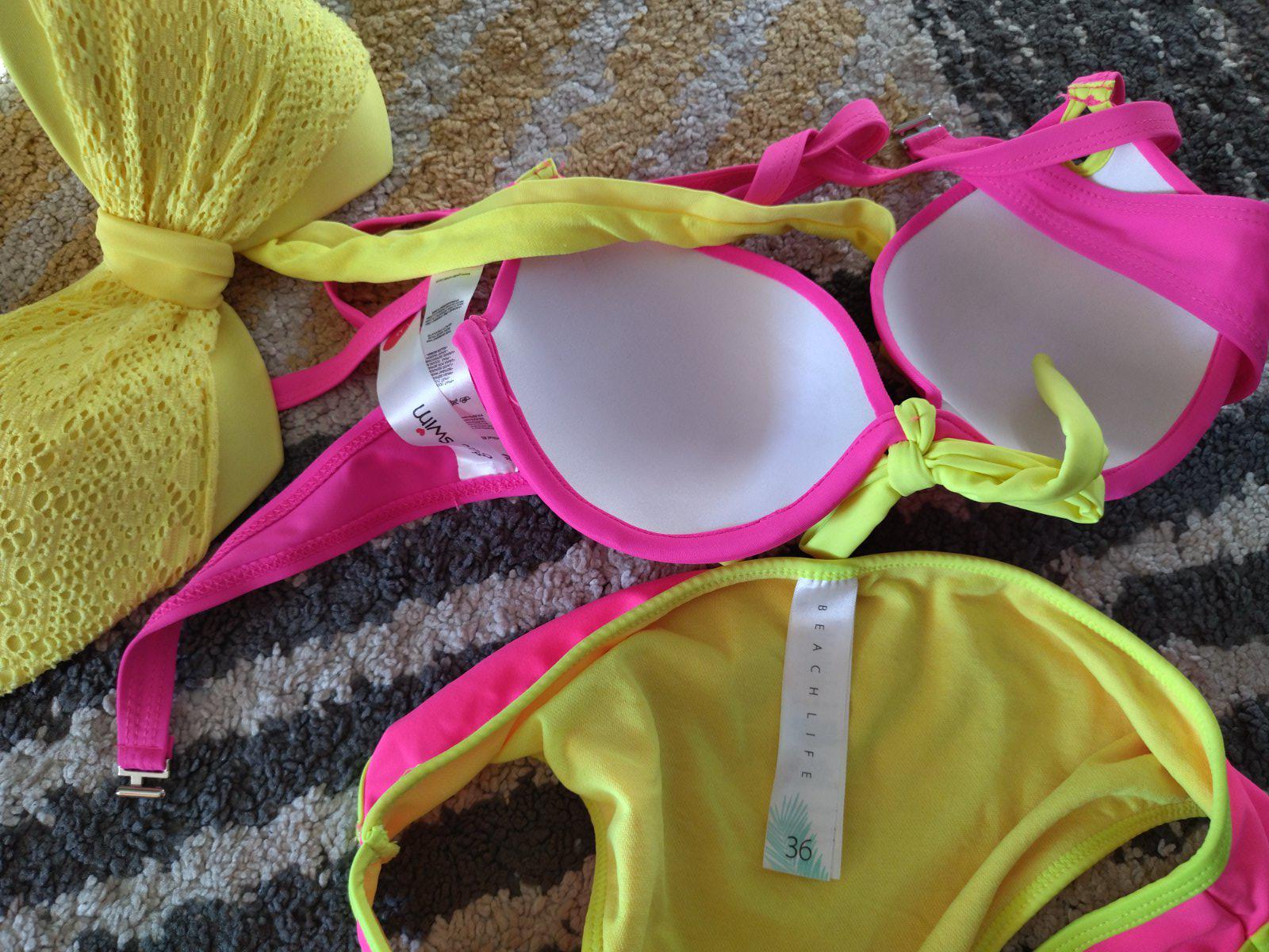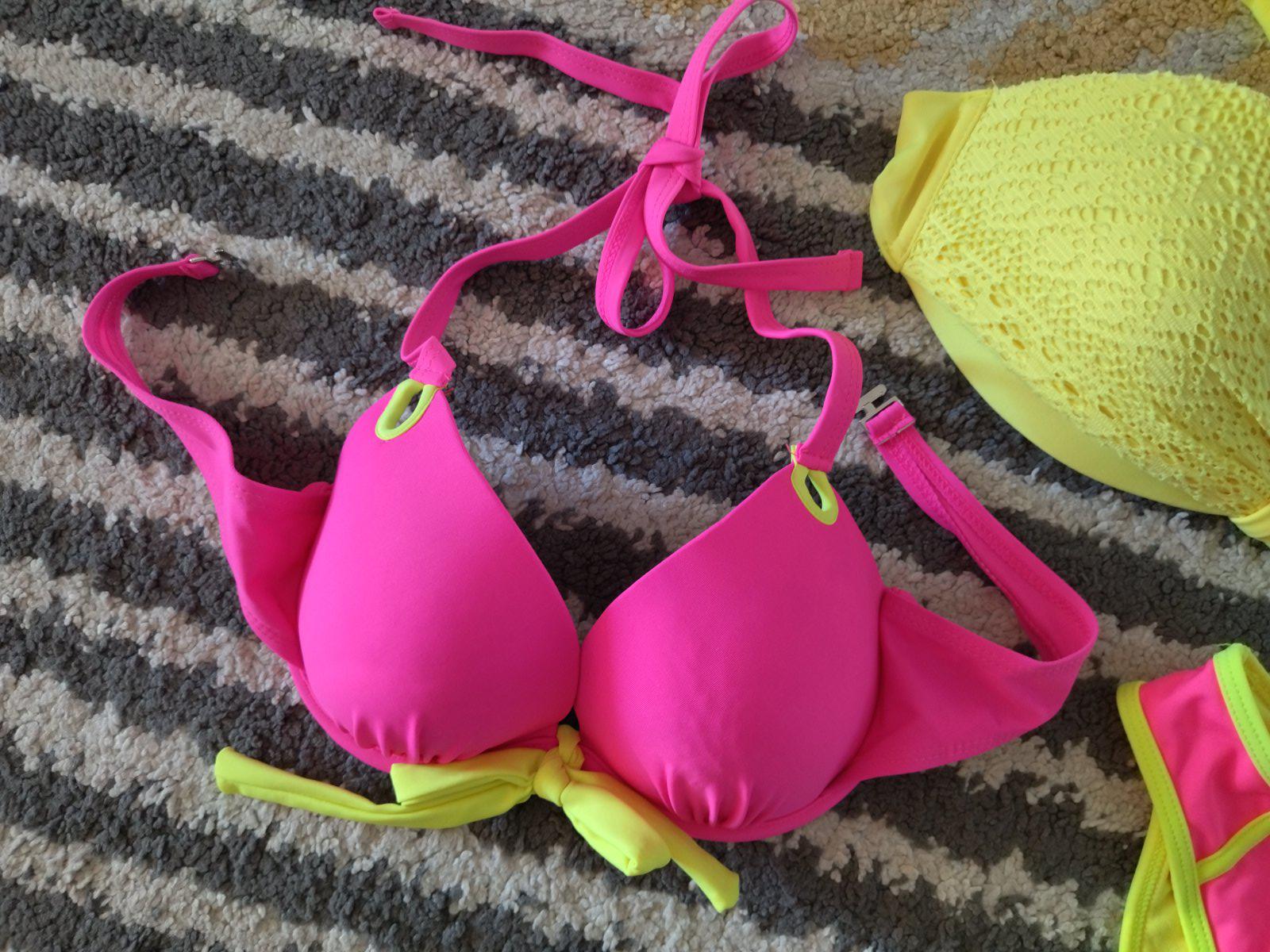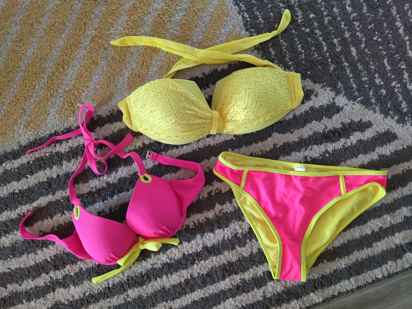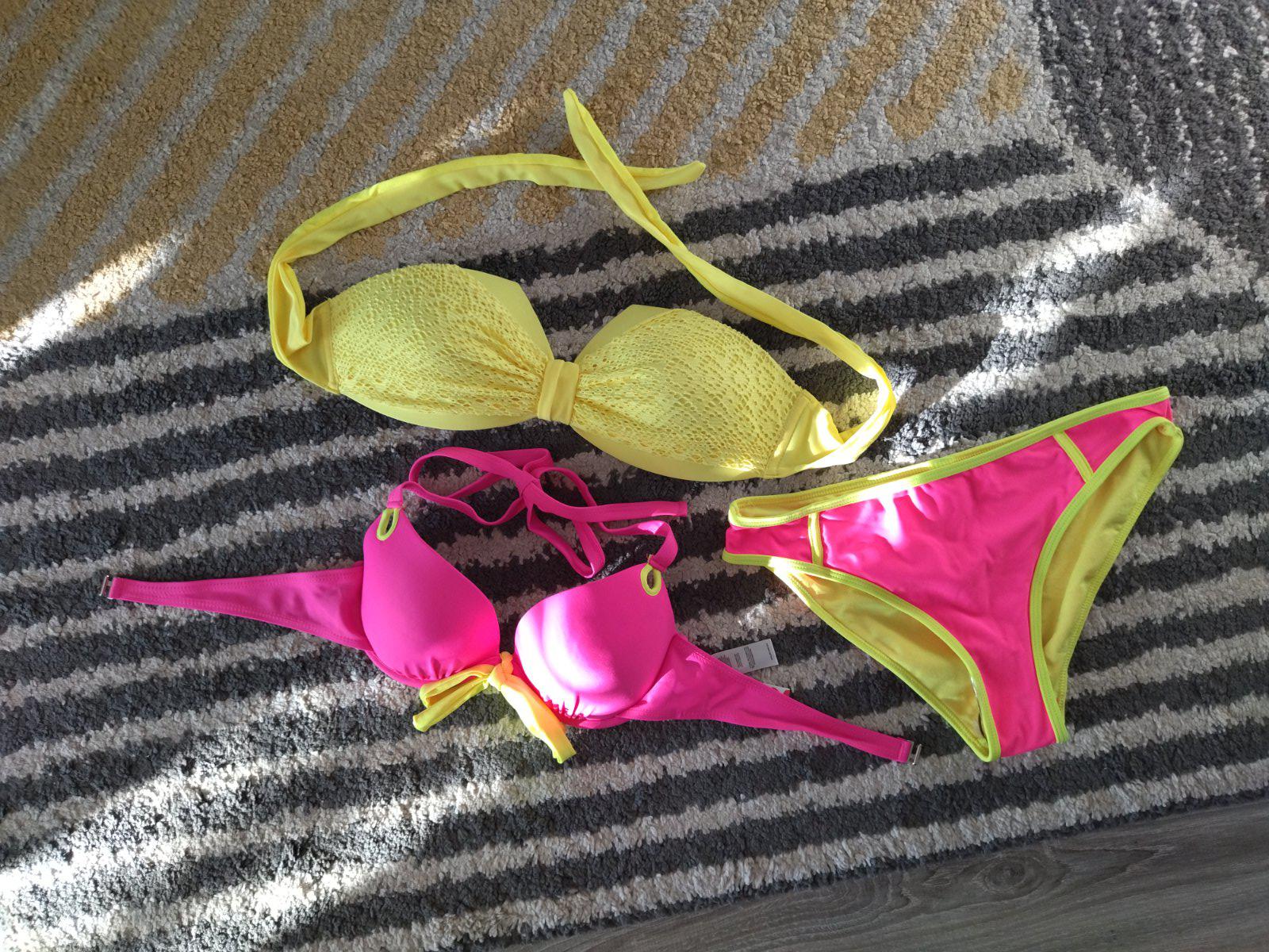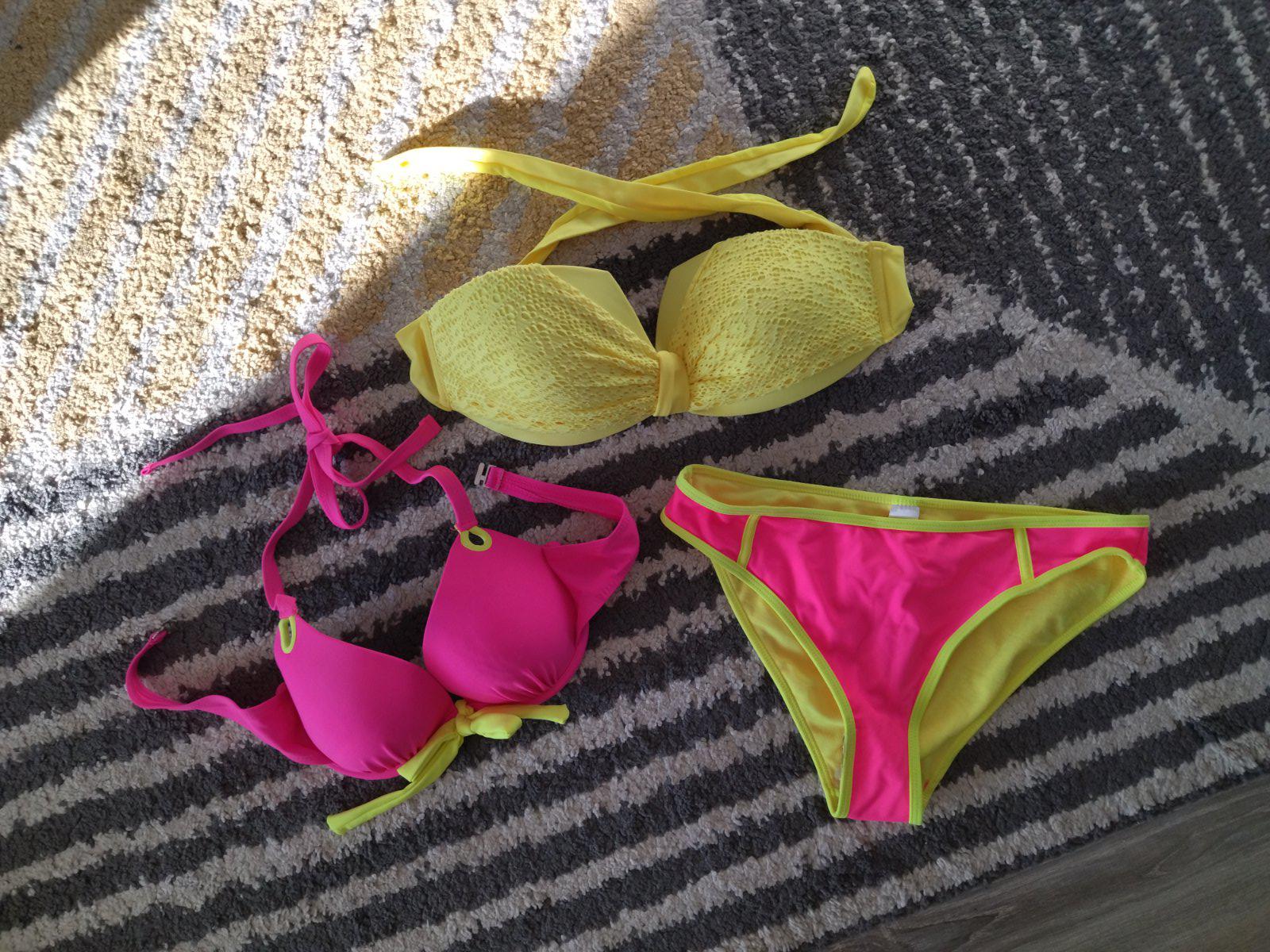 Nové nenosené, bez visačky, krásne krikľavé plavky, dopasované farebne k sebe, mne sedia na veľkosť 36