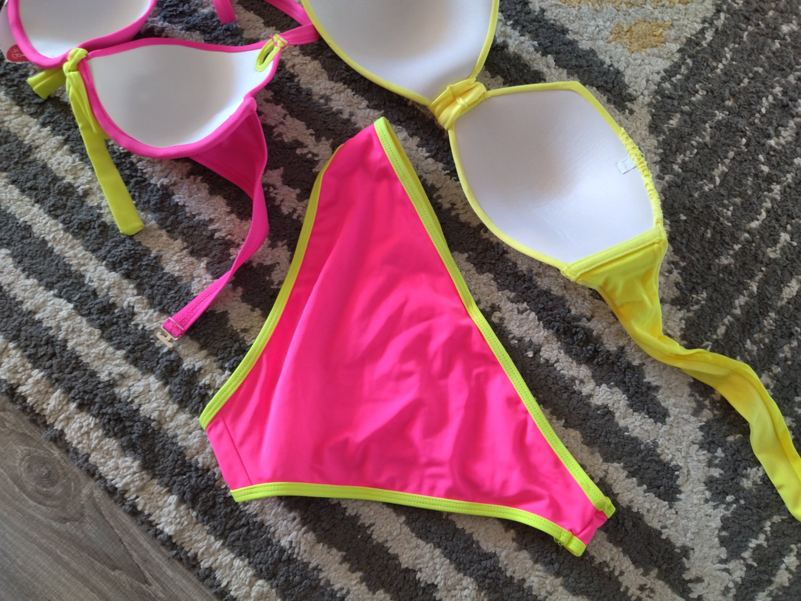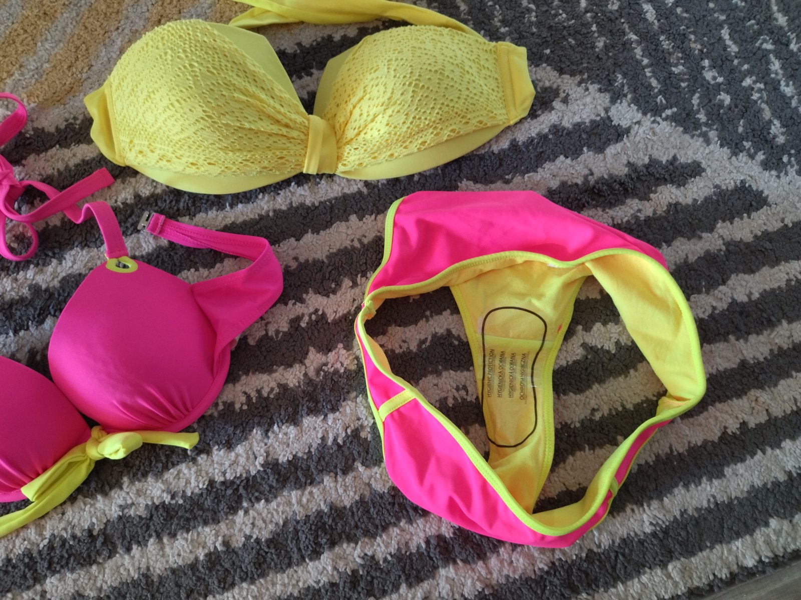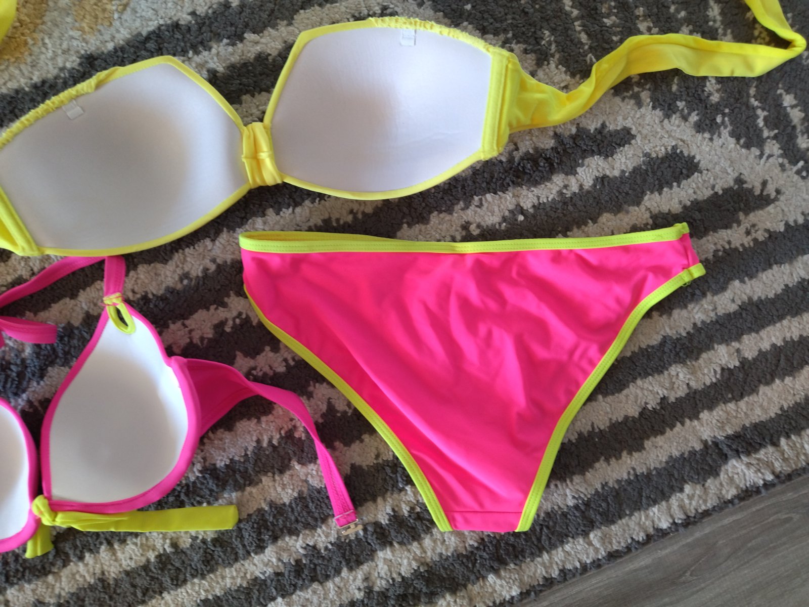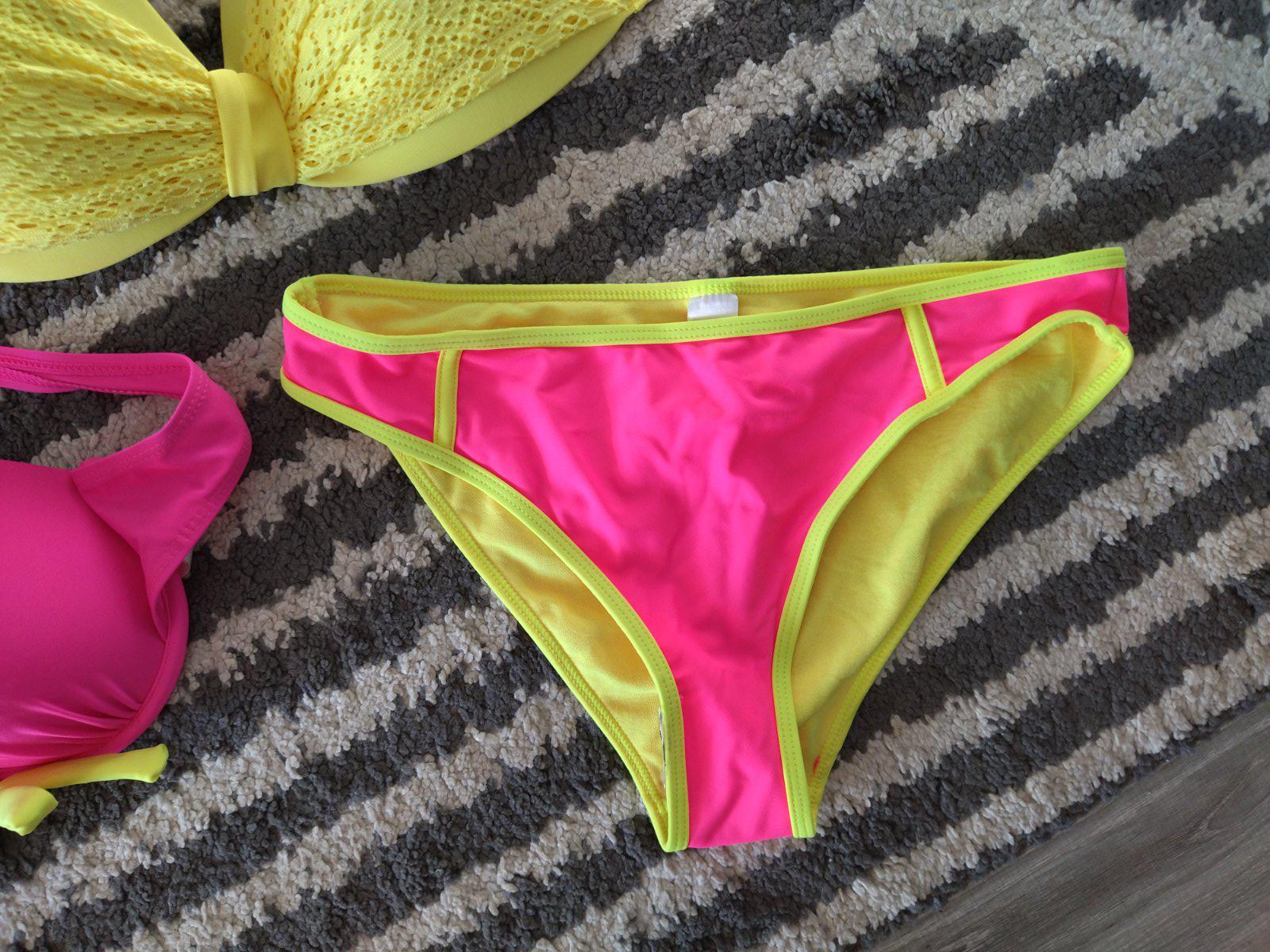 Nové nenosené, bez visačky, krásne krikľavé plavky, dopasované farebne k sebe, mne sedia na veľkosť 36
