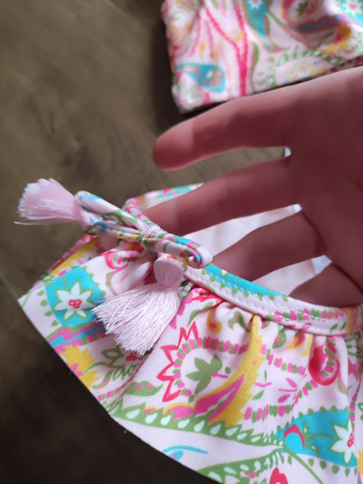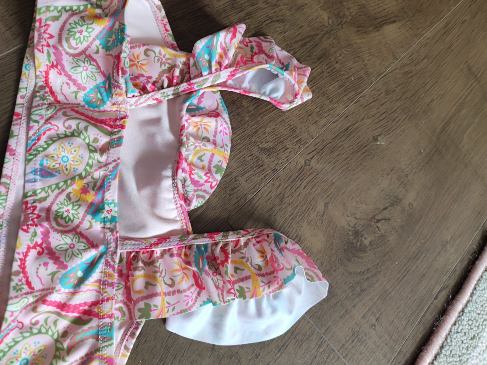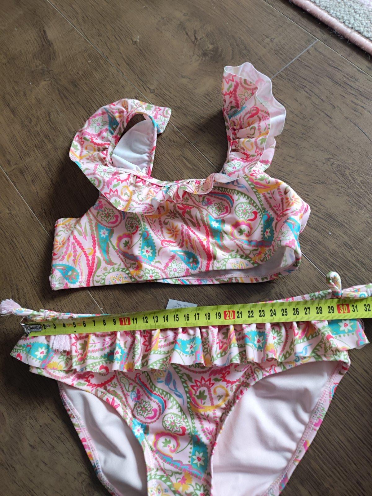 Krásne 2-dielne plavky, so suknickou a k tomu plavkového kratasy s rovnakým vzorom. Dcérka nosila občas. Výborný stav. Cena za set.