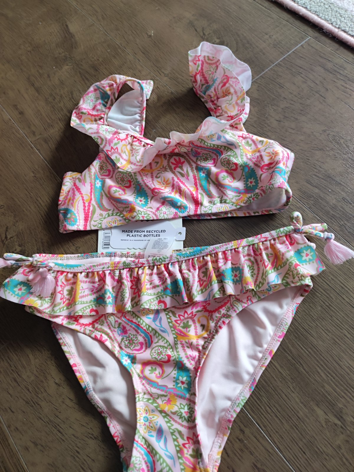 plavky pre slečny. Obrázok trošku popukaný, nápis Hello Kitty na spodnom diely sa odlepil, farba kúsok bledšia ako za nova, ale nie moc (najma ta ruzova na páse). Pás v kľude 30x2 cm, výška 18cm. ...