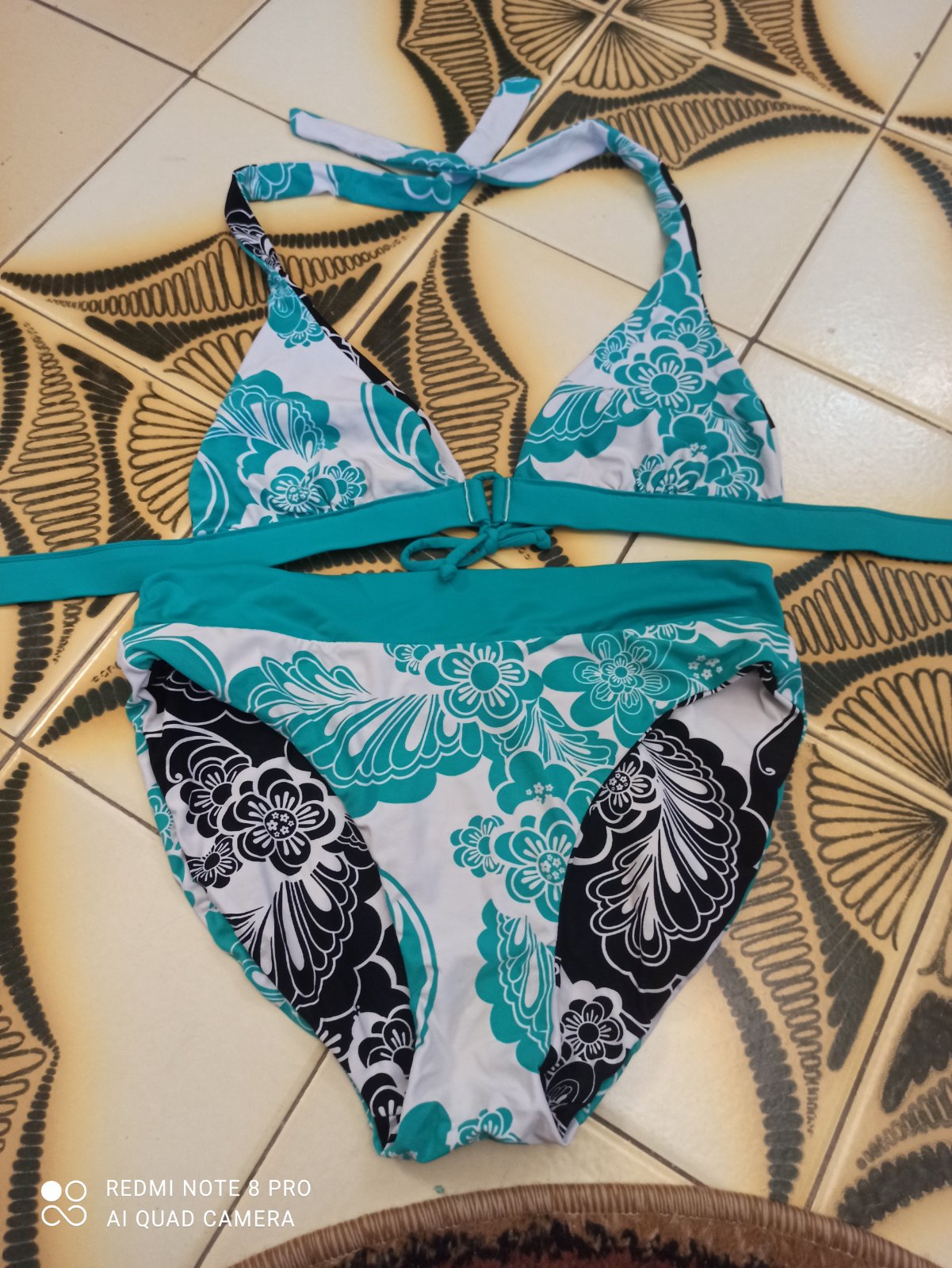 Krásne dvojdielne plavky, dajú sa kombinovať lebo sú obojstranné. Pár x oblečené sú výprave vo veľmi dobrom stave.