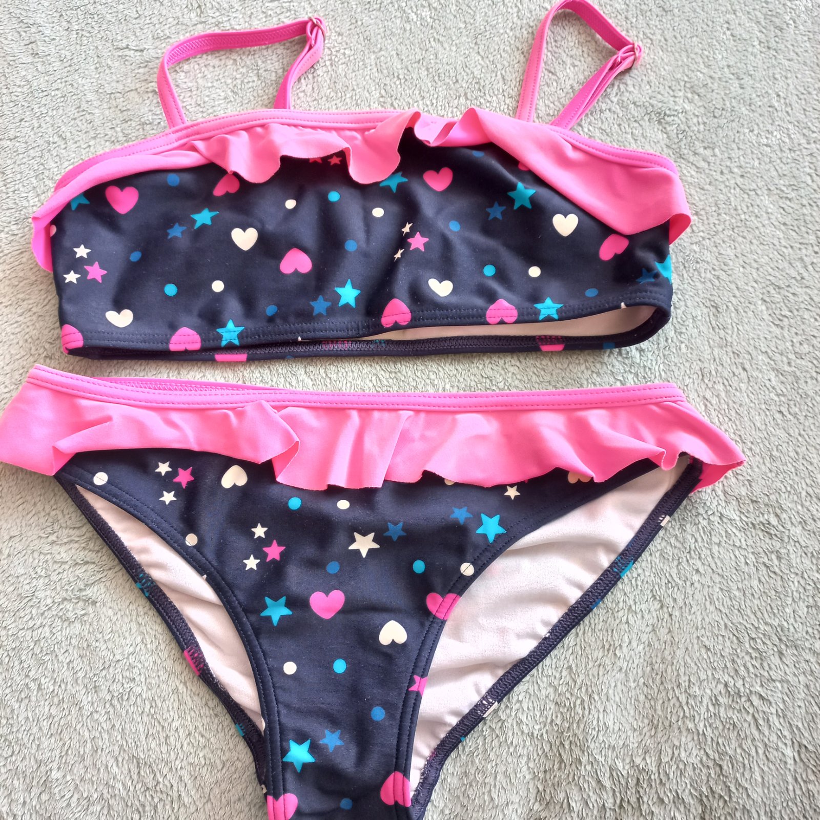 Už len koníkové!!! Pohodlné dvojdielne plavky Bonprix, super stav. Veľkosť písaná 128/134 ale sú skôr 134, riaďte sa rozmermi. Dúhové plavky: pás v kľude 28cm, výška nohavičiek 20cm. Šírka na prsia...