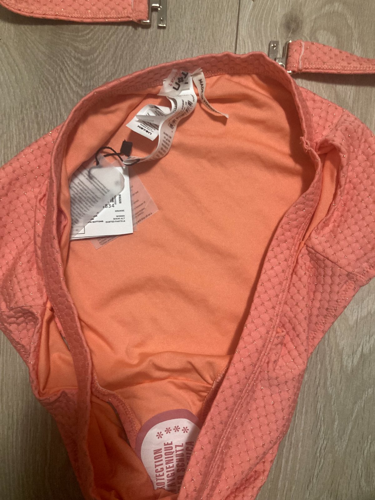 Plavky mama veľkosť M , farba skresľuje na poslednéj fotke najlepšie vidno farbu ( lososova) visačkou ( cena je len za spodok mama) ,