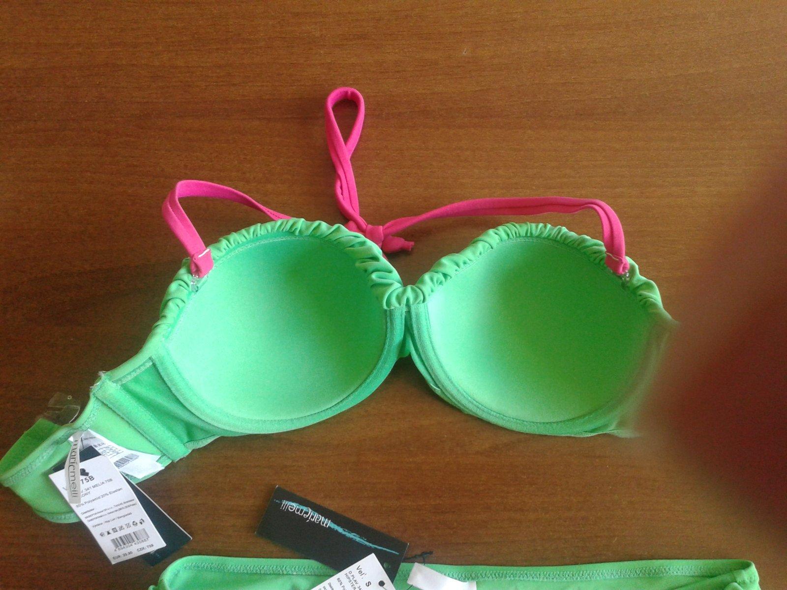 plavky BEPON, iba vyskúšané-dcére sú veľké, krásna hrášková farba, košíčky sú B, nohavičky v nenatiahnutom stave: 34cm