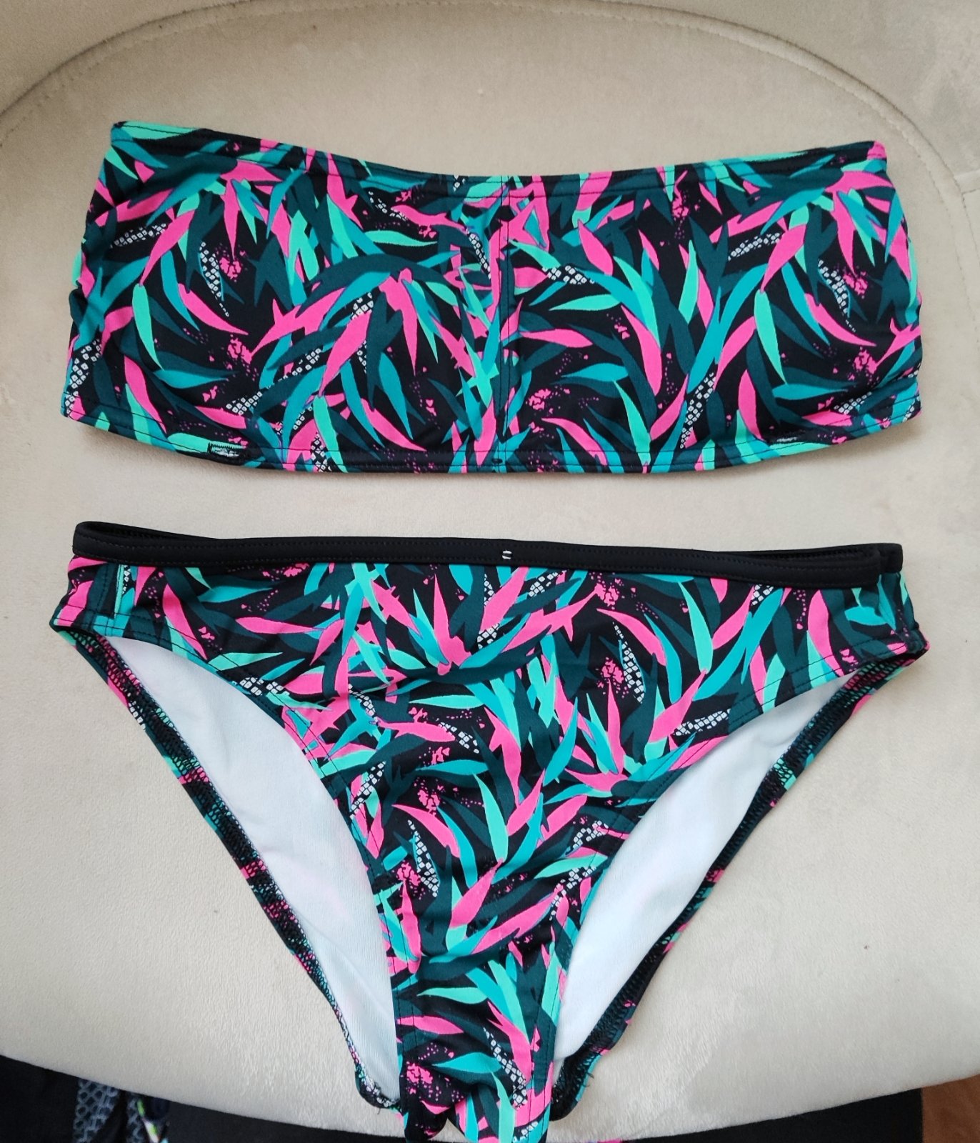 predám v peknom stave plavky podprsenka nebola nikdy nosená a nohavičky boli pár krát oblečené v lete na jednej dovolenke. Veľkosť 152 pasuje. cena je 2€ + poštovné
