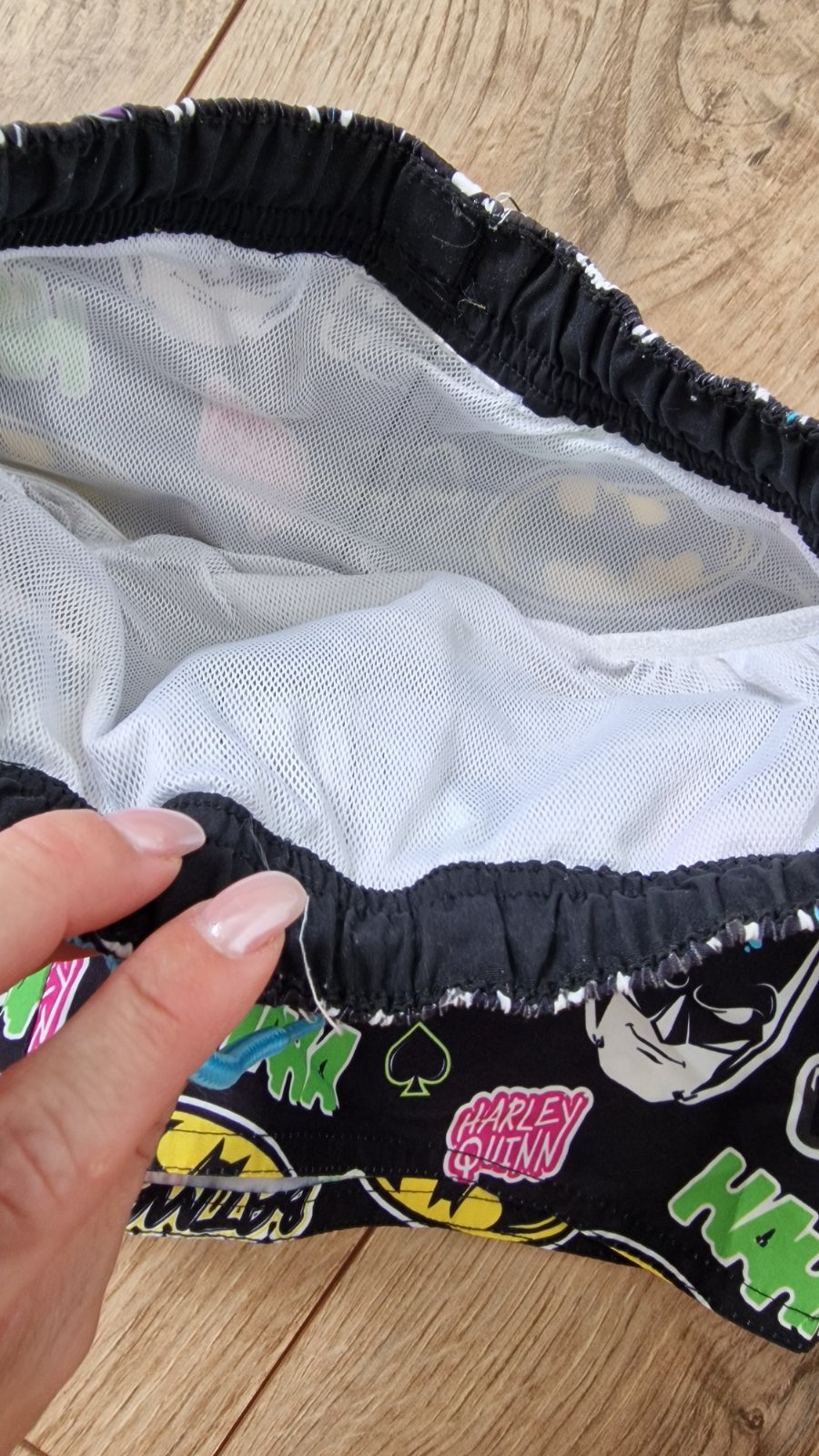 Chlapčenské plavky Batman vel. 110-116, štitok odstrihnuty. Sieťka vo vnutri.
