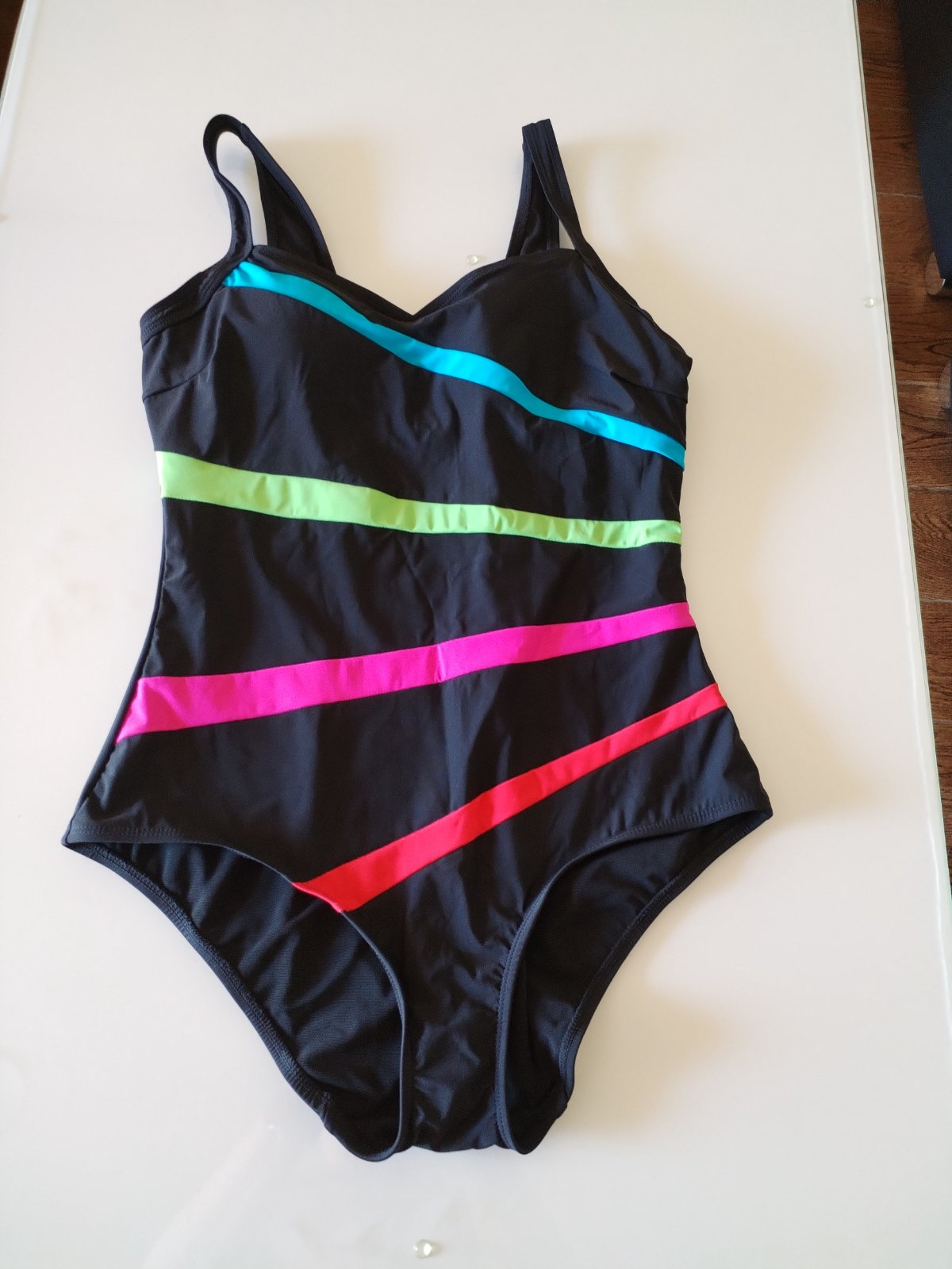 dámske jednodielne veľ.46 ale sedia na 44, sú sťahujúce, košíčky majú pevné, vystužené, bez kostic, pod prsiami je gumička, cena 20€, 1* použité
