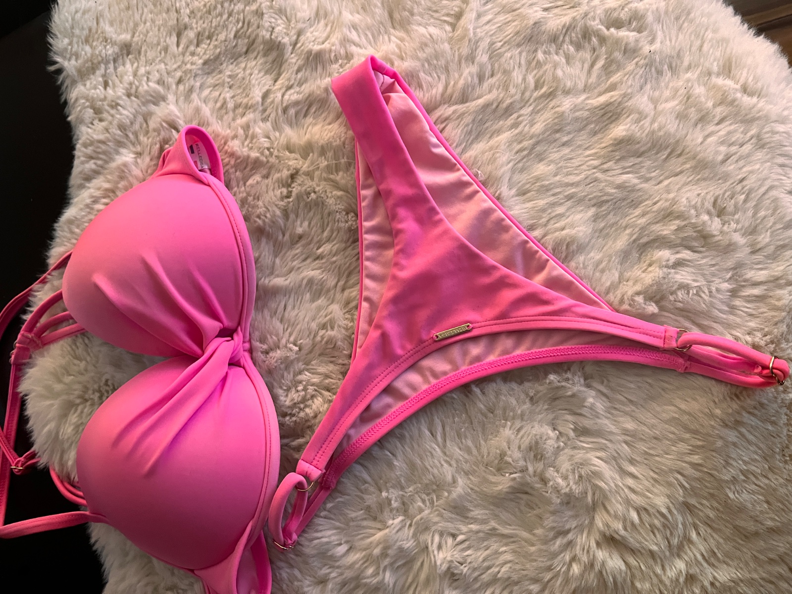 Nove Krikľavo ružove Neon rose Push up košik - sedi na 75B Brazilkovy high waist strih nohavičiek - regulovateľny Ilustračne foto vrchneho a spodneho dielu