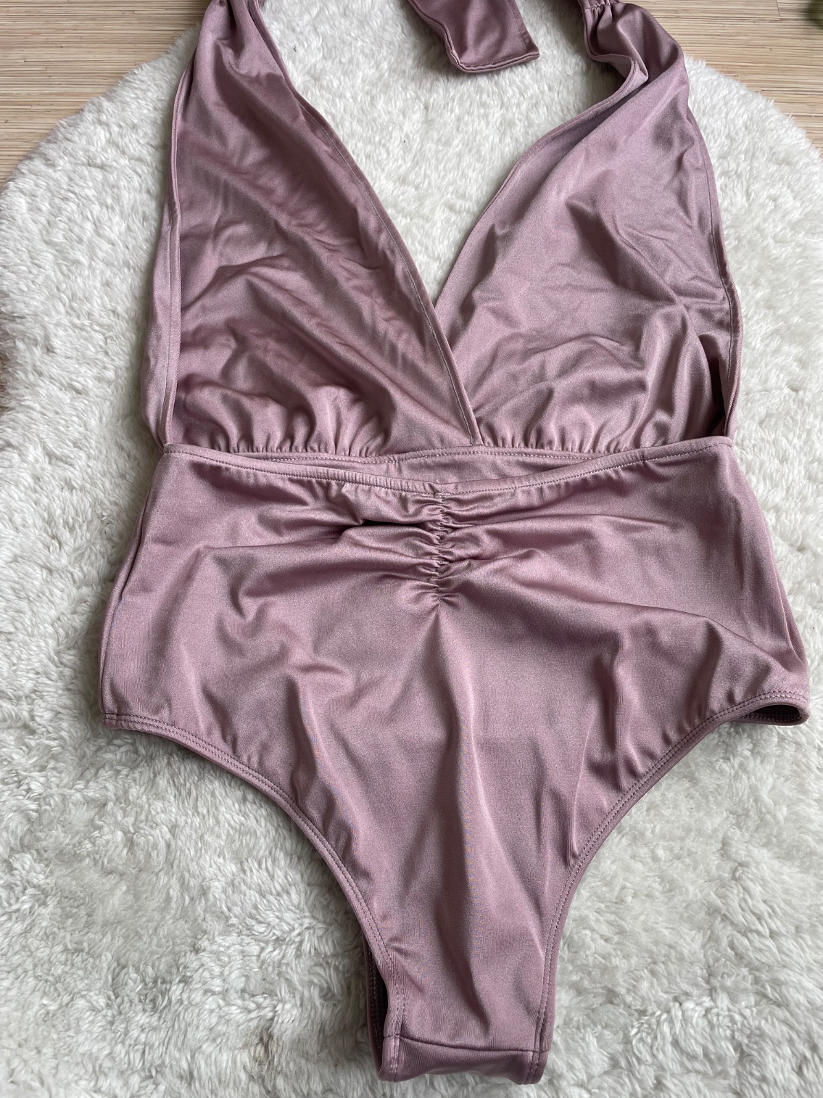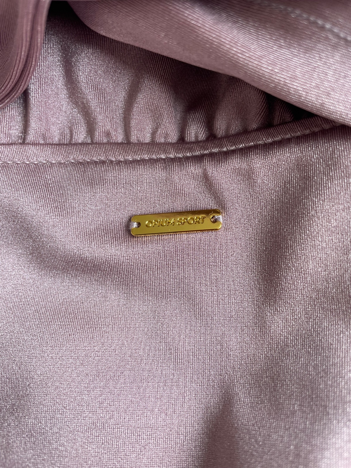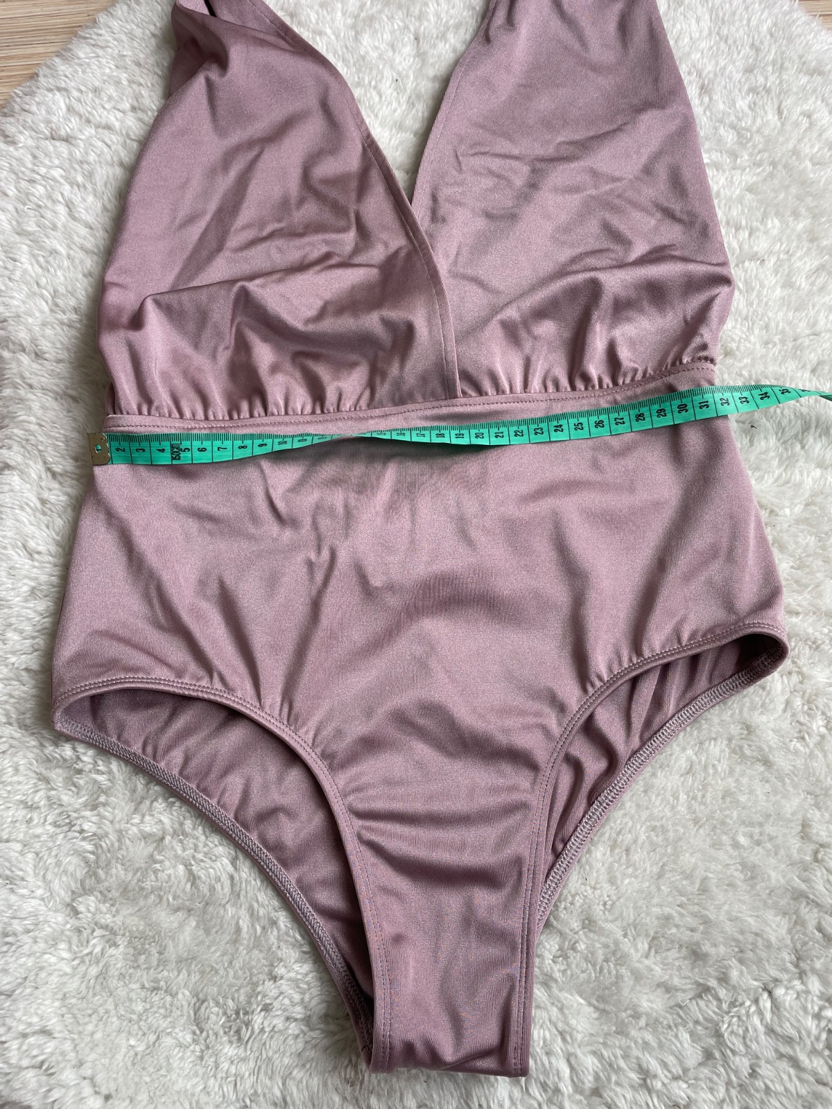 Kvalitne jednodielne plavky z leskej latky, dvojvrstvova plavkovina, s dlhou viazackou na viacero sposobov, znacka Opium Sport, rozmery na foto, raz oblecene