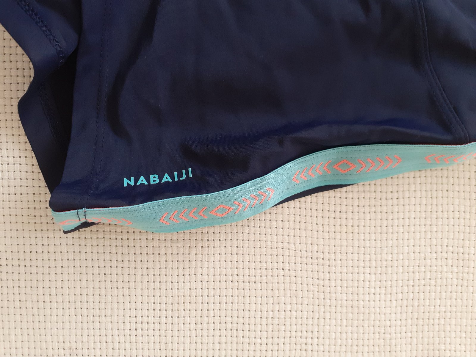 Celé modré plavky Decathlon s tyrkys.pásikmi 140