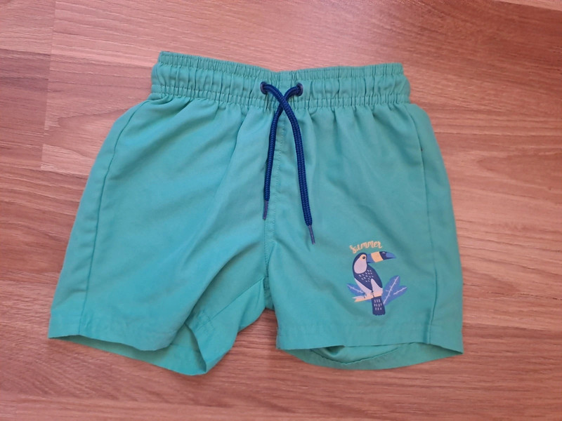 2 ks chlapčenských šortkových plaviek. Tmavomodré s vreckom sú zn. Lupilu, pásikavé Sinsay. Približné rozmery na foto. Nosené, gumičky a šnúrky sú funkčné, bez poškodení (jedine na pásikavých chýba...