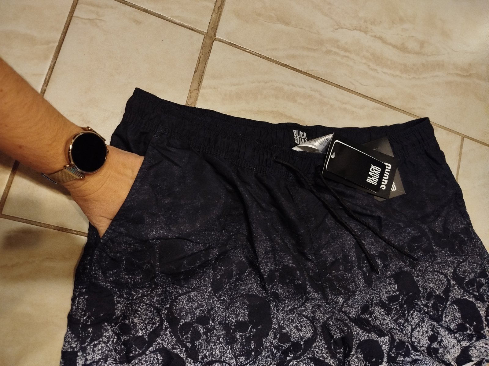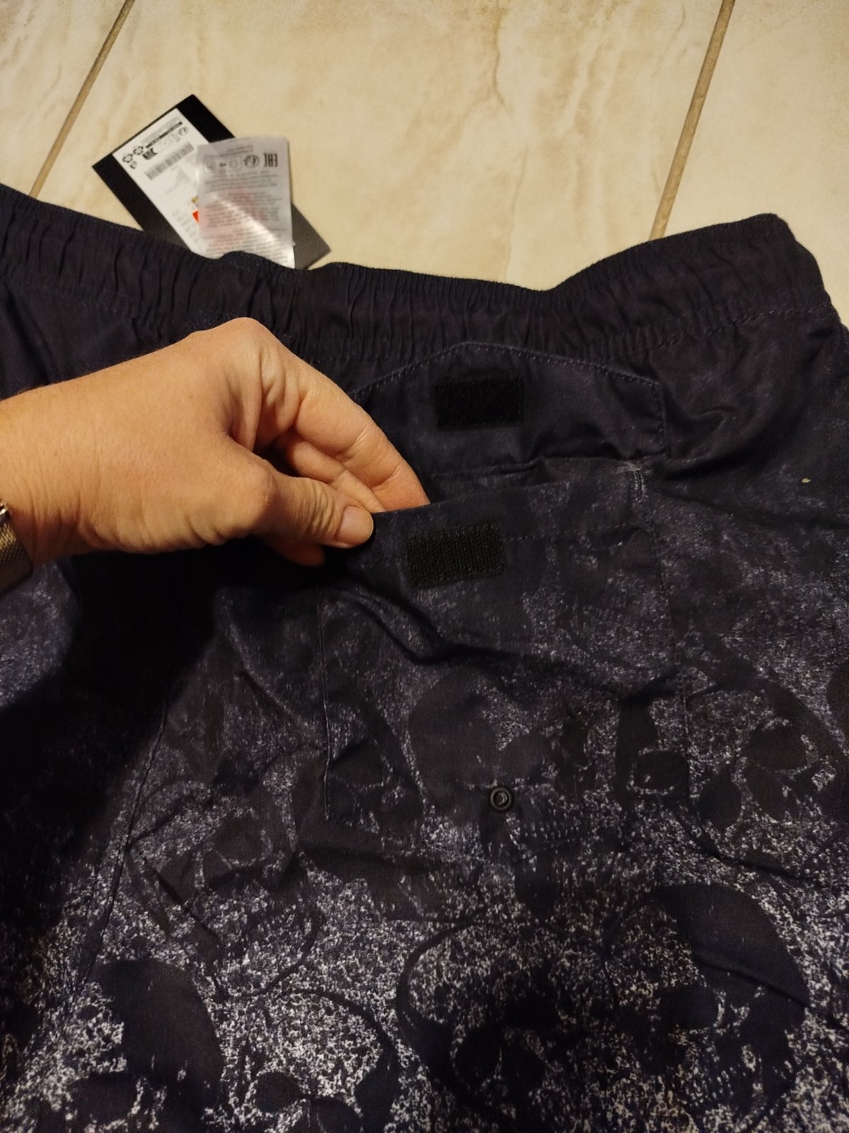 Nové plavky, doma iba oskúšané manželom, no sú mu veľké. V obchode sa už nedali vrátiť. Po bokoch sú vrecká a jedno na suchý zips vzadu.