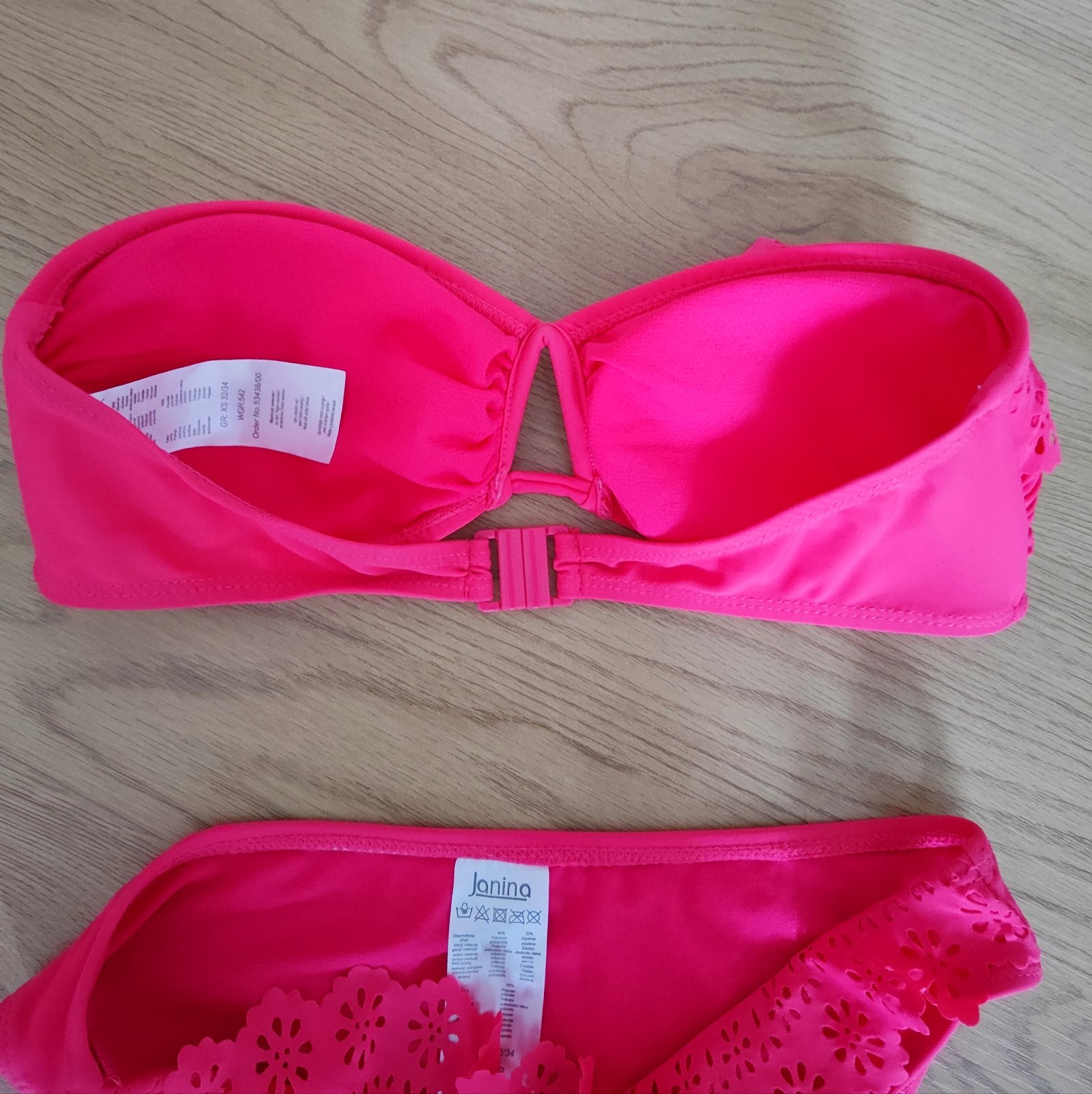 Ponúkam nikdy neoblečené dvojdielne plavky. Horný diel má odnímateľné nastaviteľné ramienka a tiež možnosť viazania okolo krku. Nie je na nich uvedená veľkosť, preto som ich na fotkách premerala. O...