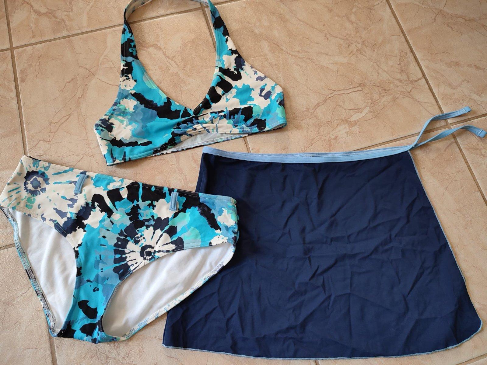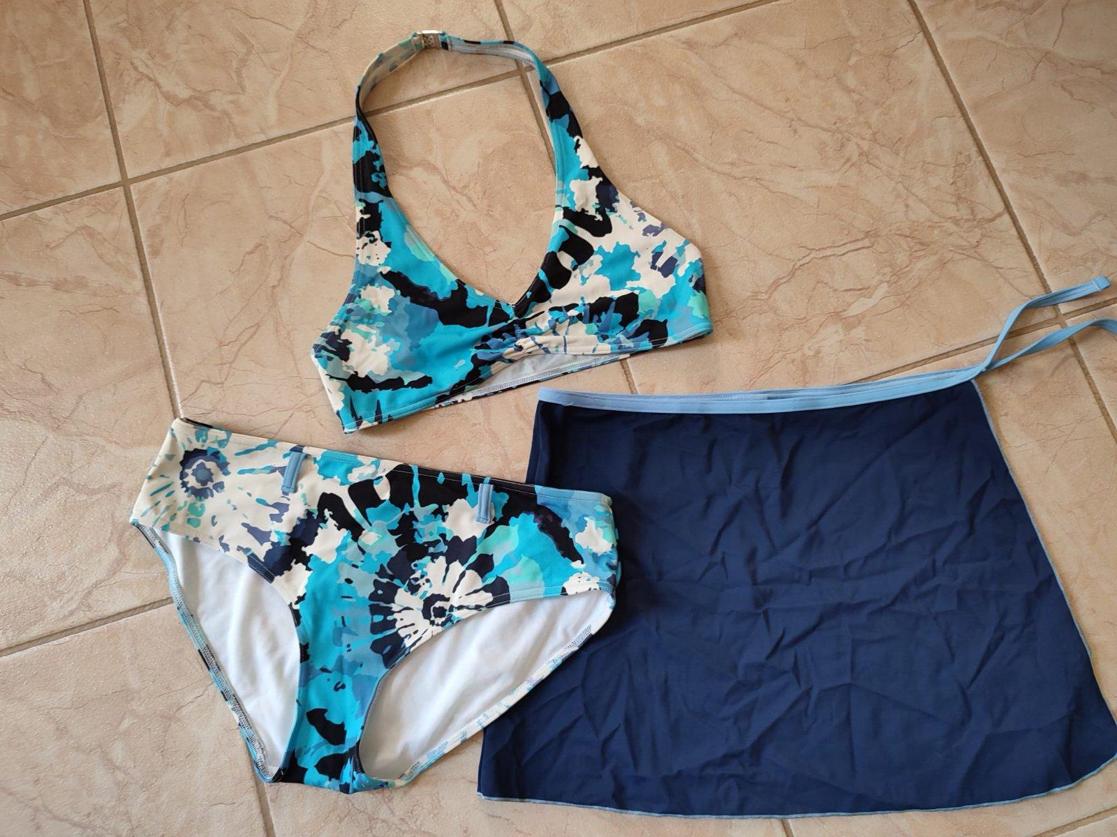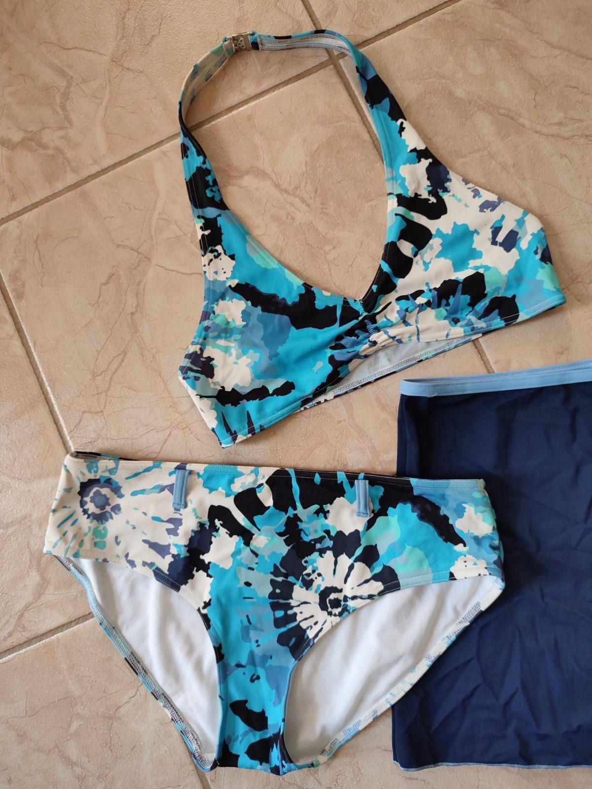 Bikiny + sukňa na zaviazanie (3-dielna sada) modrá/biela batikovaná.