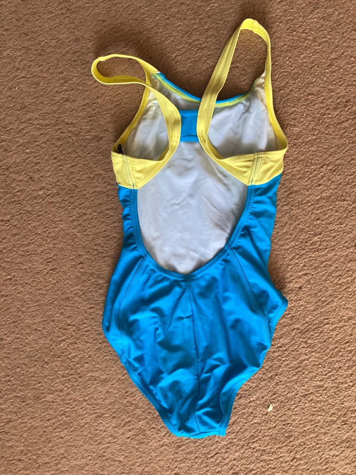 Predám jednodielne plavky veľkosti 9-11r. Celková dĺžka je 61cm, šírka v páse je cca 31cm, šírka pod pazuchami je cca 33cm. Nepoškodené, ako nové.