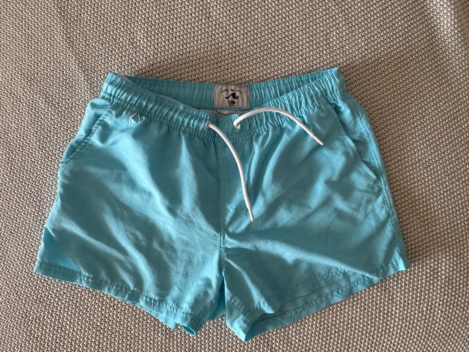 Predám plavkové kraťasy, univerzálne/aj na bežné nosenie/ v dobrom stave v krásnej svetlomodrej farbe.Rozmery:pás 36 cm, dĺžka 32cm.