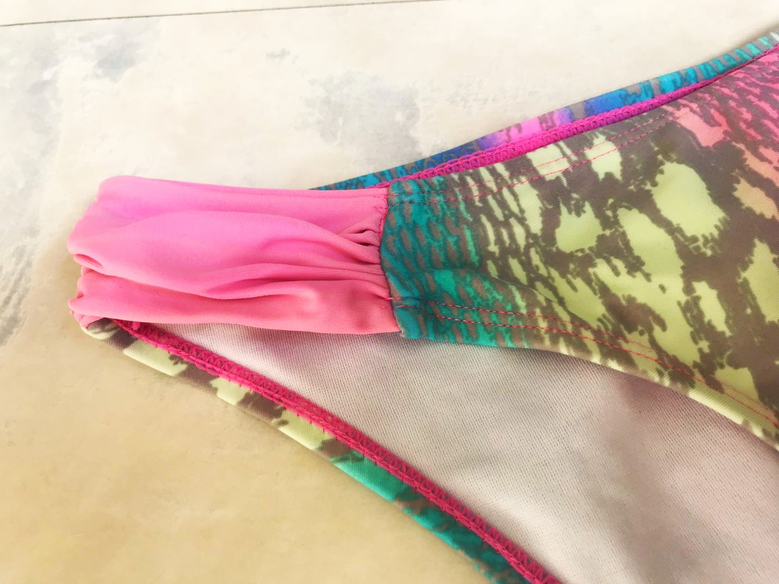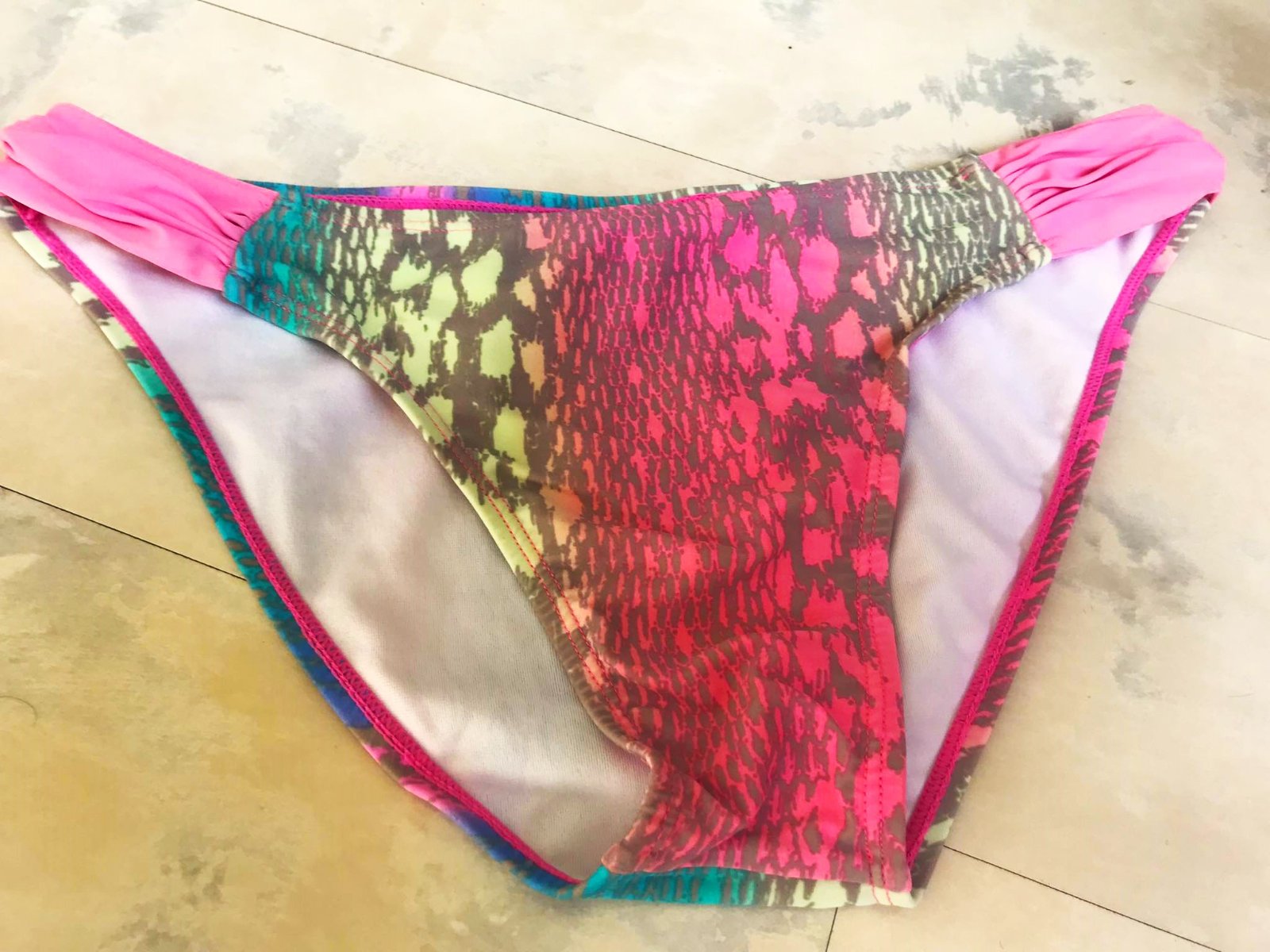 neznosené,podšité,kvalitne vypracované plavky,batikovaná úprava farieb - veľmi nezvyčajné a netuctové,vrch je bez výstuže, (je tam otvor na vloženie,v prípade potreby), je tam vložená tenká molitanová vložka, krásne vyniknú na opálenej pokožke, v top stave,krásna farebná kombinácia,veľkosť vyfotená,košík od A (s výstužou) po B,obvod nohavičiek,v klude položené 39 x 2 cm,pekne sa poddajú do 44/45 max x 2 cm,uvedená veľkosť je 38