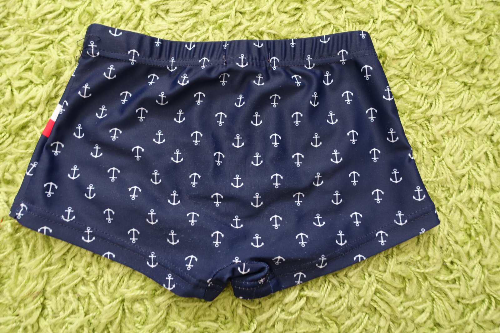 Predám krásne plavočky s kotvičkami francúzskej značky Little Marcel. Veľkosť je síce uvedená 104, ale určite nesedí na veľkosť. My sme ich mali na začiatku 98 a boli nám len, len. Odporúčam na veľkosť 92, preto ich aj zaradzujem do tejto veľkosti, riaďte sa prosím rozmermi. ... My sme ich mali max 2-3x, ale sú v peknom nosenom stave. Sú krásne, kvalitné. Celú prednú stranu majú podšitú, takže v predu sú dvojvrstvové. Sú jemné a príjemné na nosenie. V zadu majú maličkú chybičku krásy, z nosenia, sú tam také biele ďobočky, ako keď si dieťa sadá a troška ich ošuchne. Ako také mini žmolčeky (viď druhé foto). Na tom vzore sa to stráca. Vidno to len úplne zblízka pri bližšom zahľadení. Tak sú vhodné už len pre nenáročnú mamičku. Celková dĺžka je 15 cm a šikmo dole prechádza do dĺžky 19 cm a šírka pásu v kľude je 20,5 cm. (V10)
