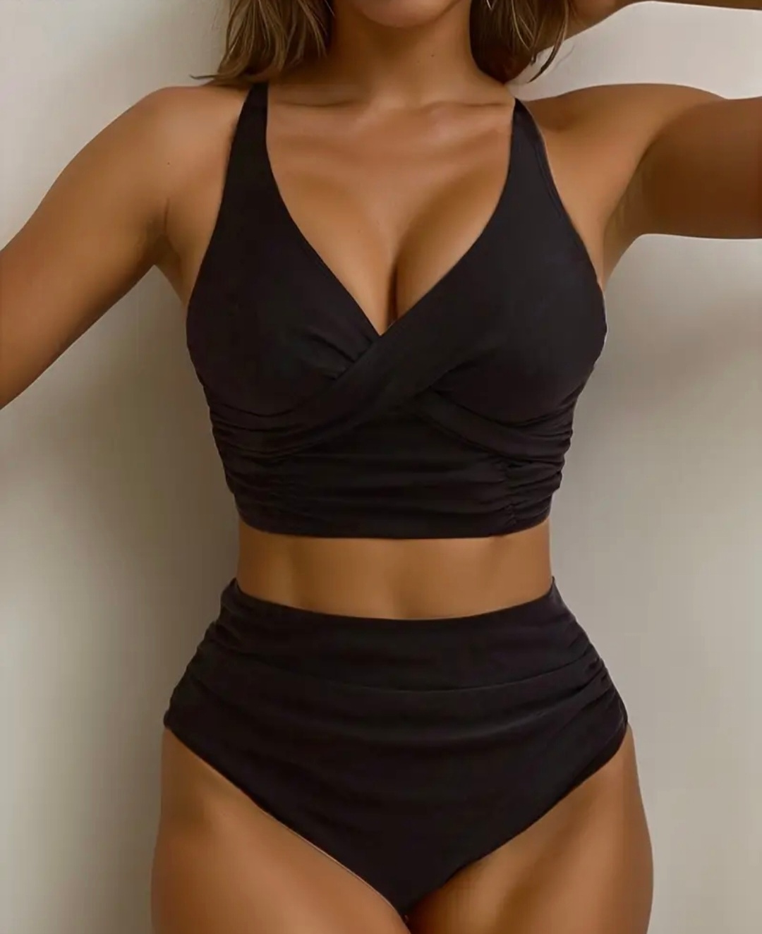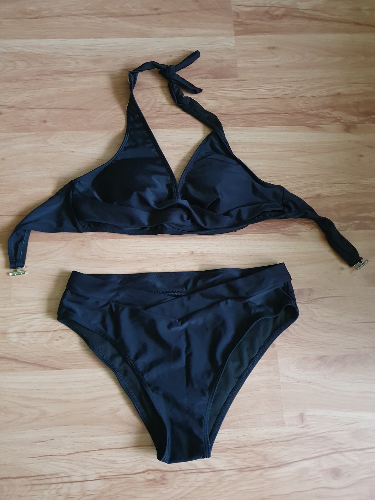 Krásne čierne plavky, veľmi pekne ukážu na postave, nie sú vystužené na prsiach, zapínajú sa na cuplik okolo krku a na chrbte sa viažu. Pás spodného dielu je 29 CM x 2 a je meraný v kľude samozr...
