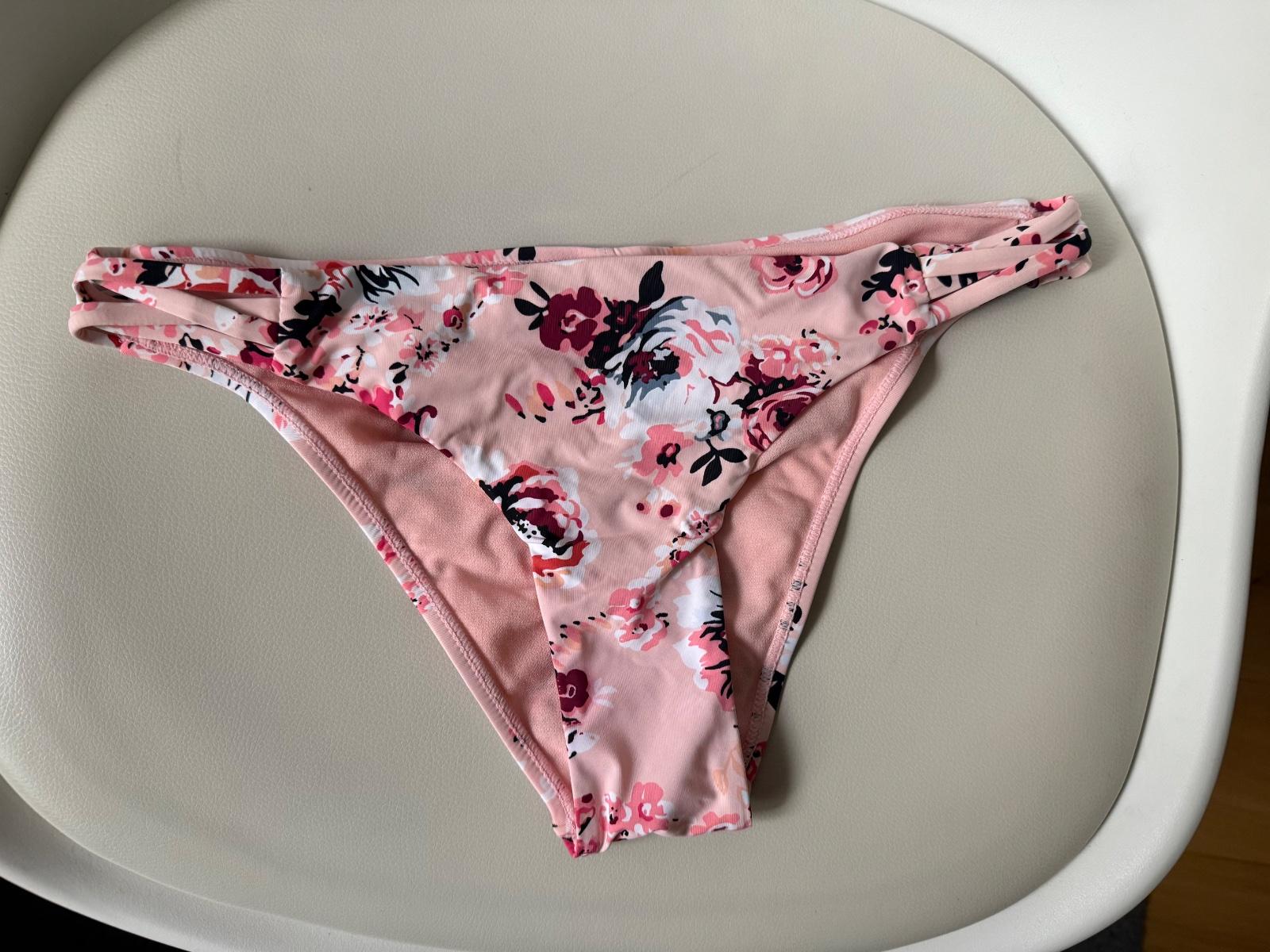 Dvojdielne plavky, veľkosť 36. Vrchný diel mierne vystuženy. Nohavičky tangá.