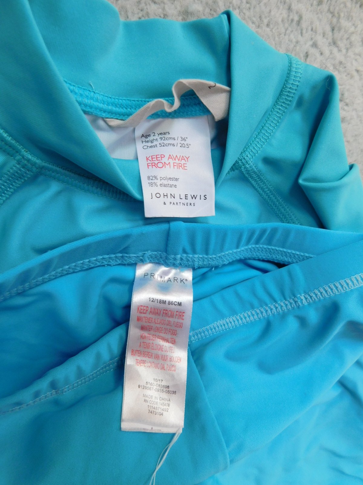 predám ochrannú súpravu do vody, veľ. cca 2-3 roky, 92, tričko zn. John Lewis dĺžka 35, šírka 27, spodok zn. Primark pás 21,5 cm, dĺžka 26, málo nosené, bez chyby, cena 7,- plus pošt.