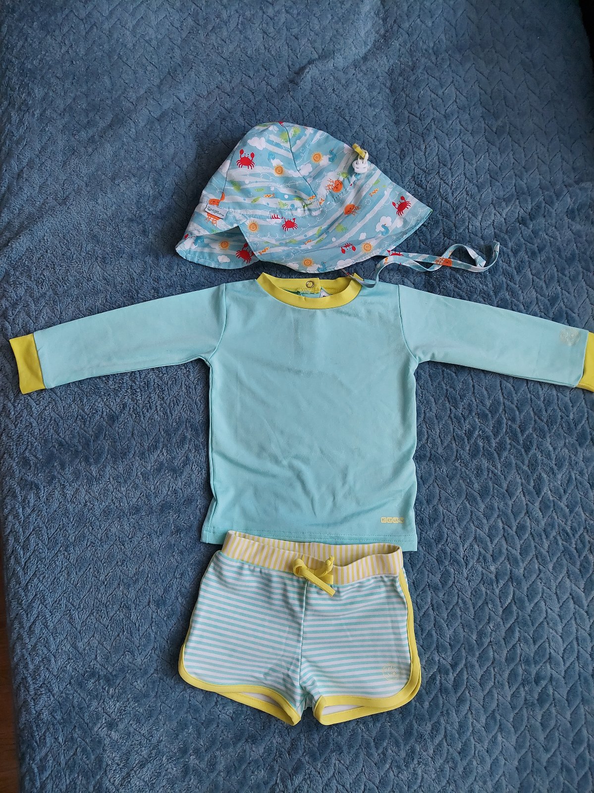 Kvalitné Plavky Kietla UPF 50+ , vzadu majú 3 gombíky pre lahšie oblečenie. Bez poškodenia iba nejaký fliačik na tričku. Veľkosť od 6 mesiacov. Syn na fotke má 7 mesiacov.