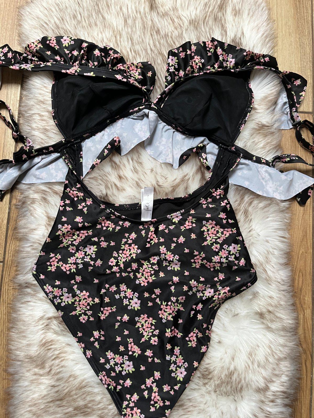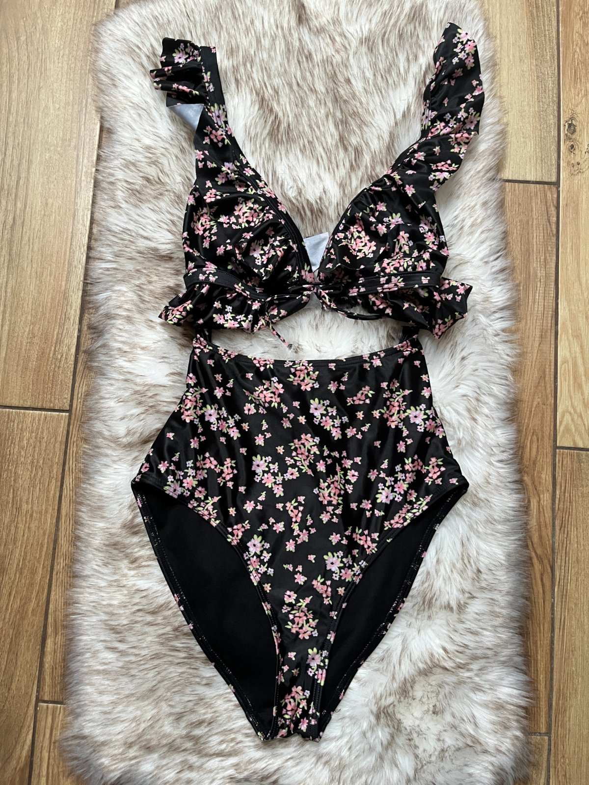 Exkluzívne plavky Peek & Beau Fuller Bust s výstrihom a volánikom v ružovej kvetinovej potlači - MULTI, raz vzate, nepoškodene