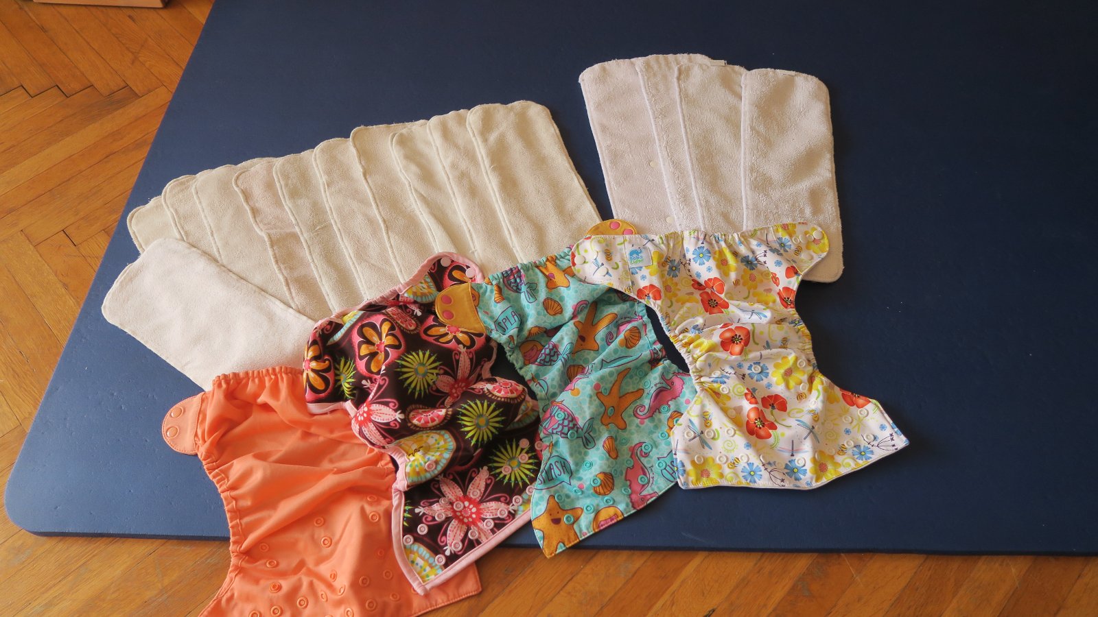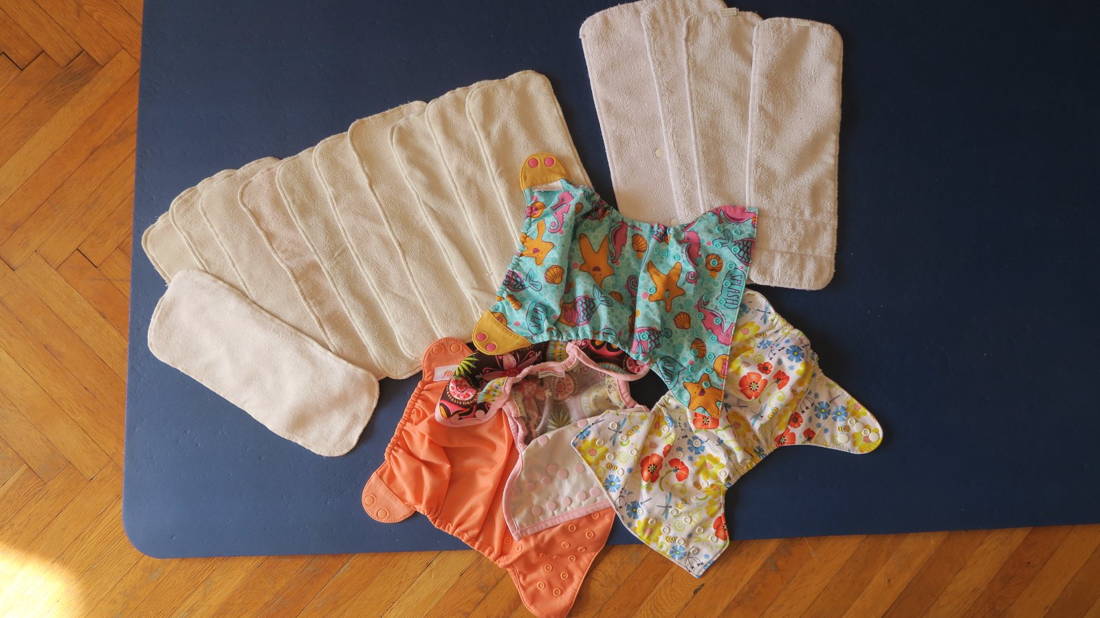 Predám balík 11 menších a 4 väčšie látkové plienky a k tomu 4 ks plu nohavičiek.