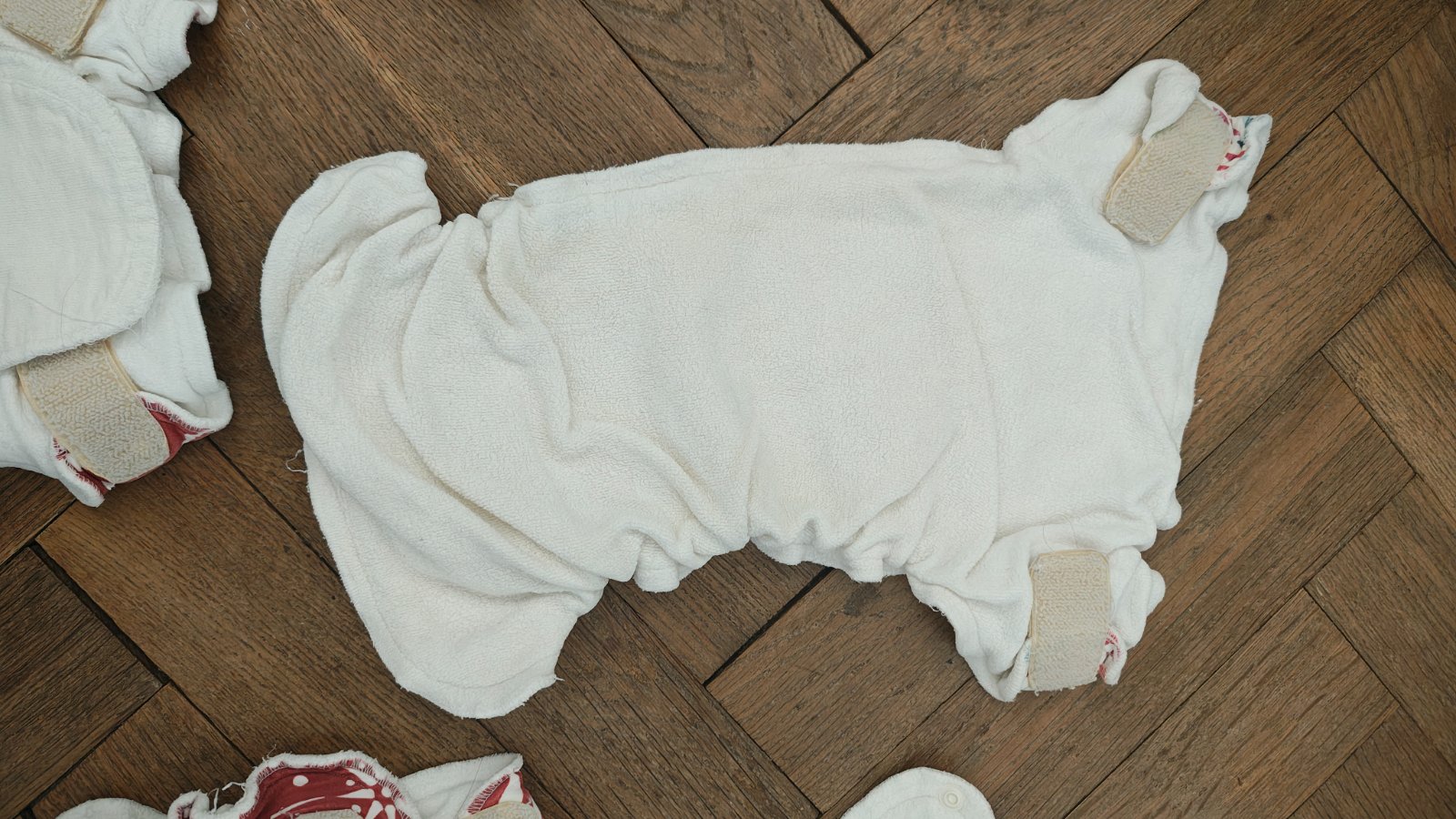 4x nočne plienky + 2x nepremokave nohavicky (biele s cervenym vzorom)