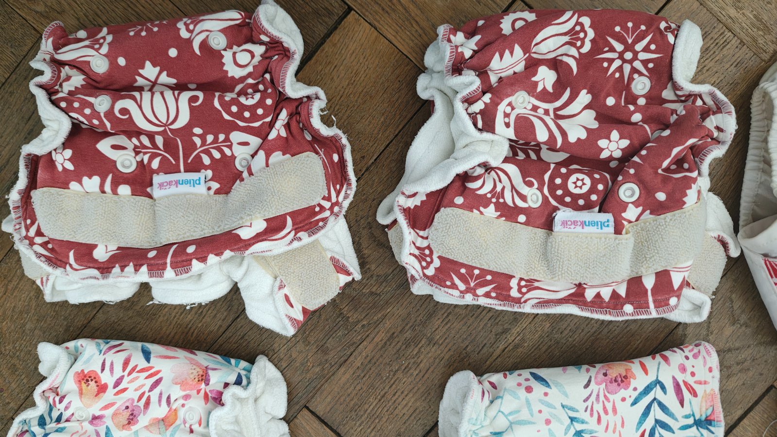 Predam kompletnu vybavu na latkovanie. Ja som vyuzila aj pri dvojickach. Dokopy su po 3 detoch, tomu zodpoveda stav.. niekde su skvrny, neskusala som uz vyprat, na jednych nocnych uz nedrzi sev formu, ale su normalne pouzitelne, aj tak na ne musi ist este nepremokava vrchna vrstva. Velkost rastuca, od 3.5 do 16 kg.