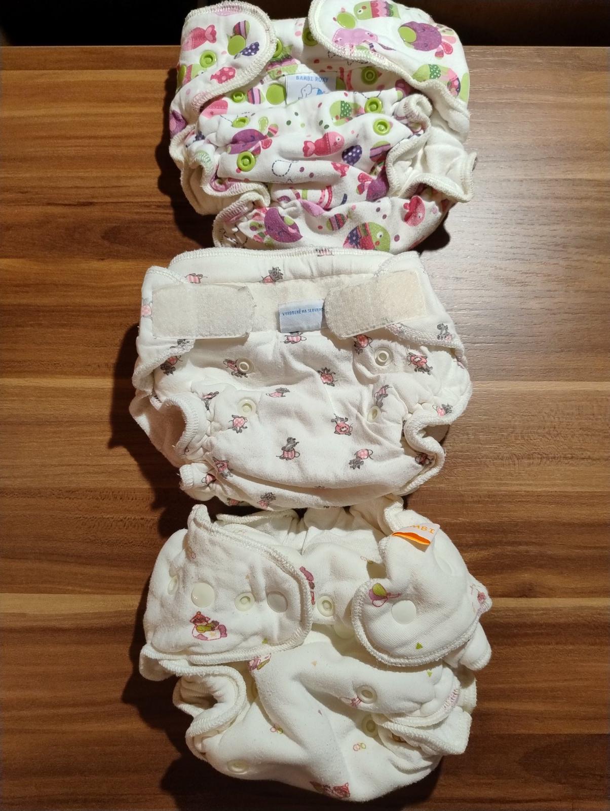 Veľkosťou sa dajú krásne prispôsobiť, takže ich využijete na malých aj väčších drobčekov. V balíku sú aj niektoré plienky pre novorodeniatko, čo je super, ak chcete začať látkovať hneď od malička. Súčasťou sú aj textilné vkladačky, ktoré slúžia ako savá vrstva do plienok.