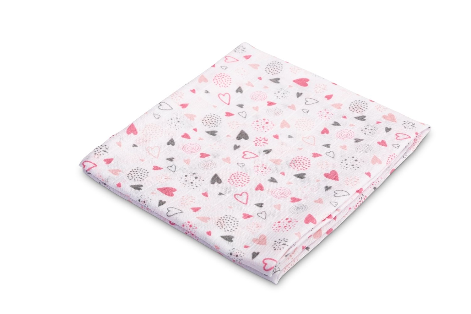 Sensillo Mušelínová plienka srdcia ružovo-šedé 70x