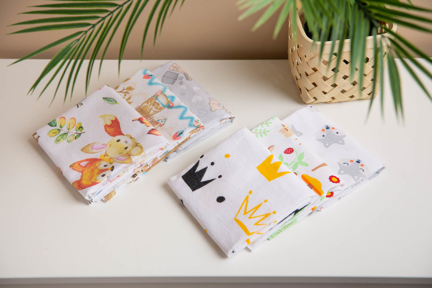 Plienky sú balené v sadách po 3 kusoch.Vzory v sadách sú vyberané náhodne podľa dostupnosti materiálov. Vždy je však zachované delenie na zostavy určené pre chlapcov a dievčatá.