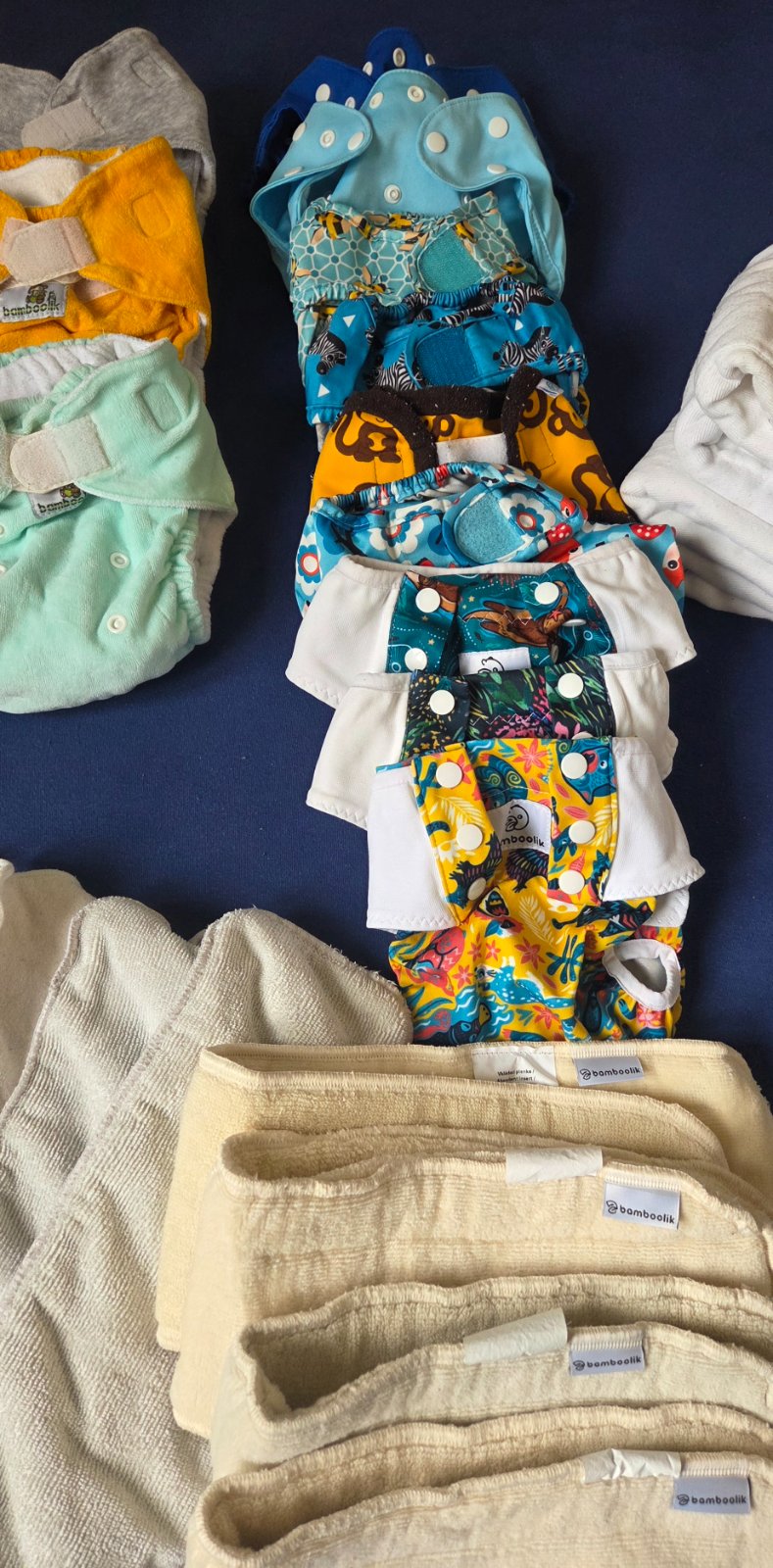 Sada látkových plienok, nové, nikdy nepoužité, ani neprané. Všetko univerzálne veľkosti. Nakoniec som nelátkovala. Obsahuje: LILLYBE vrchné nohavičky slon s oranžovým lemom suchý zips, SOVICK AIO v...