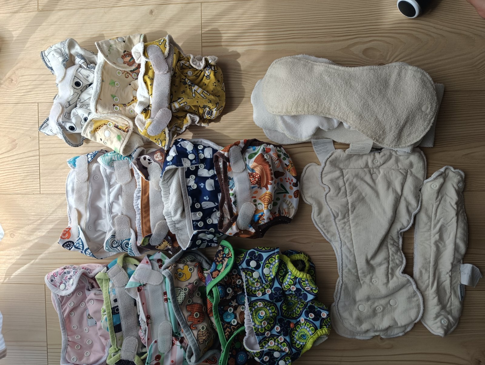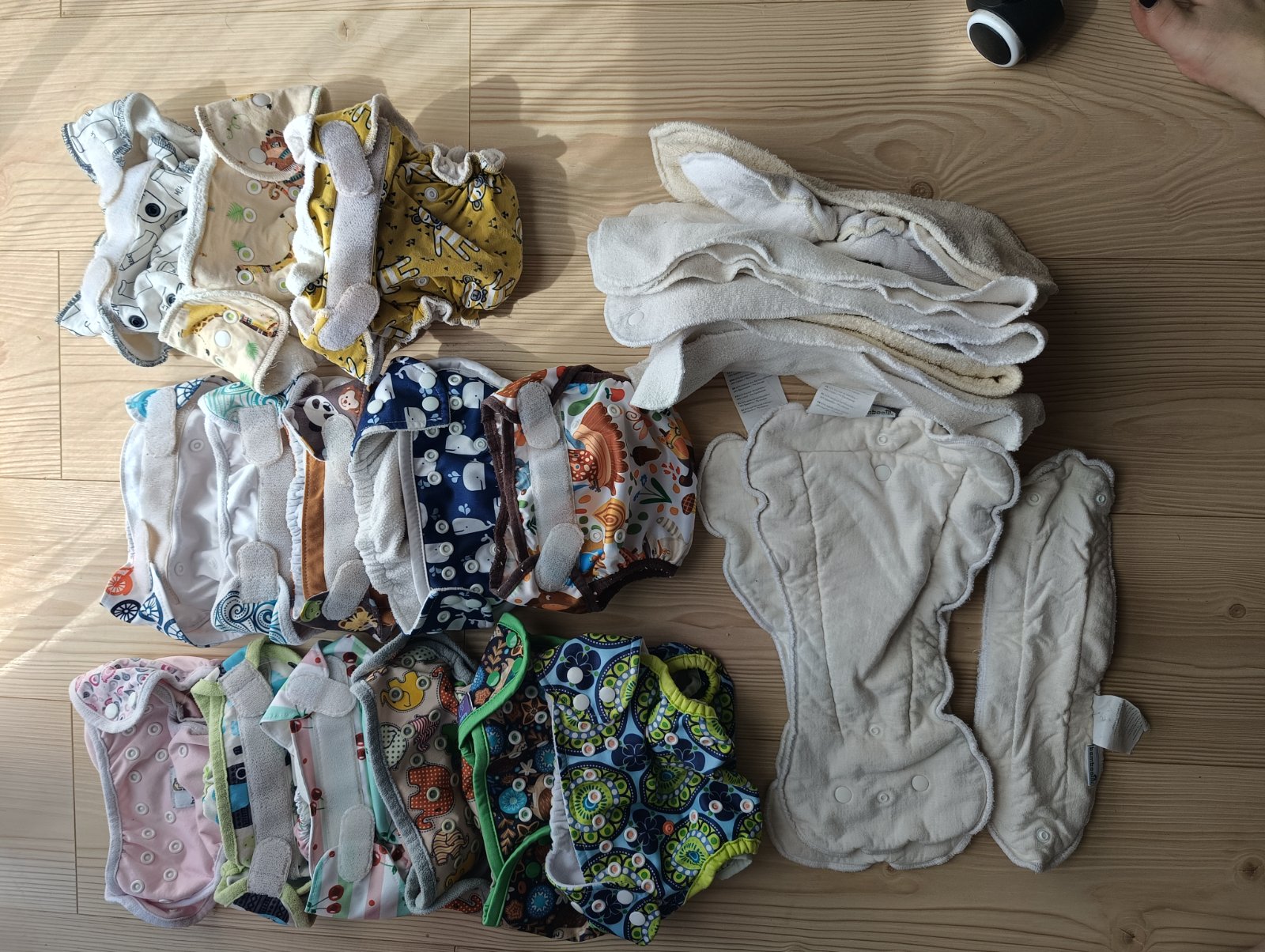 Predam v celku balik plienok a nohaviciek na latkovanie. Po 1 dietati. Komplet staci na plne latkovanie, prala som kazdy 2.den. su tam aj vrchne nohavicky aj all in in one,vlozky aj hrubsie aj tensie. Niektore v stave ako nove, niektore so zmolkami na lemoch, funkcne v poriadku. Suche zipsy drzia super.