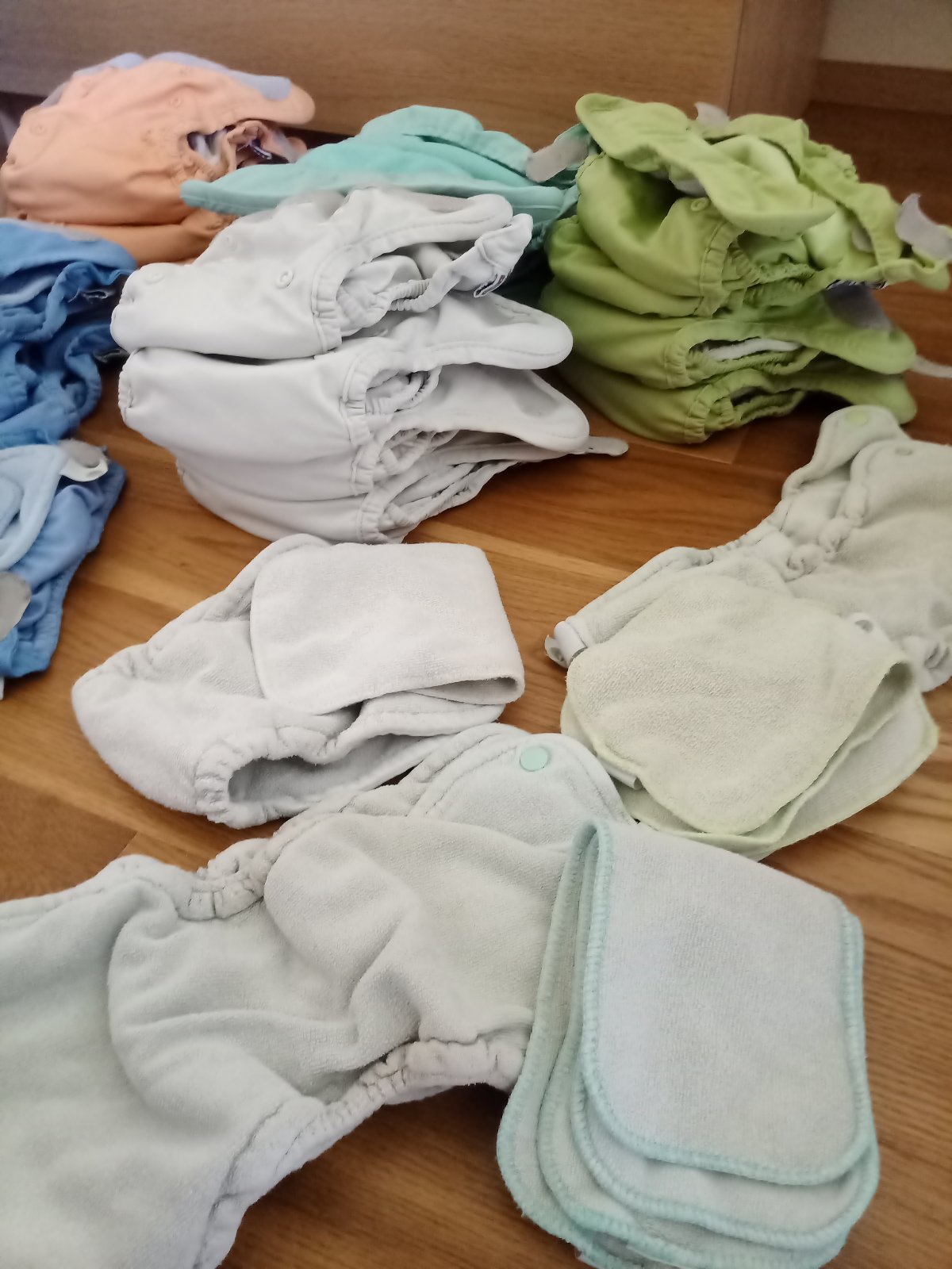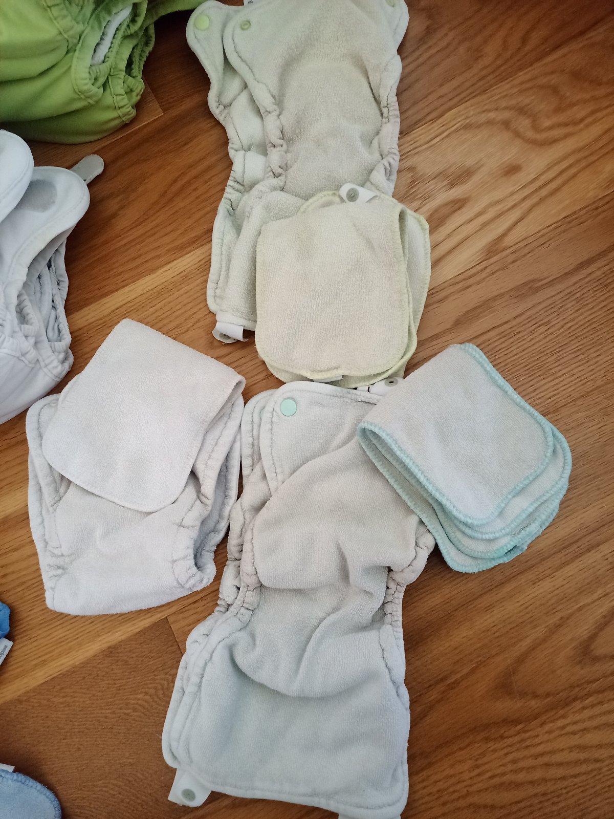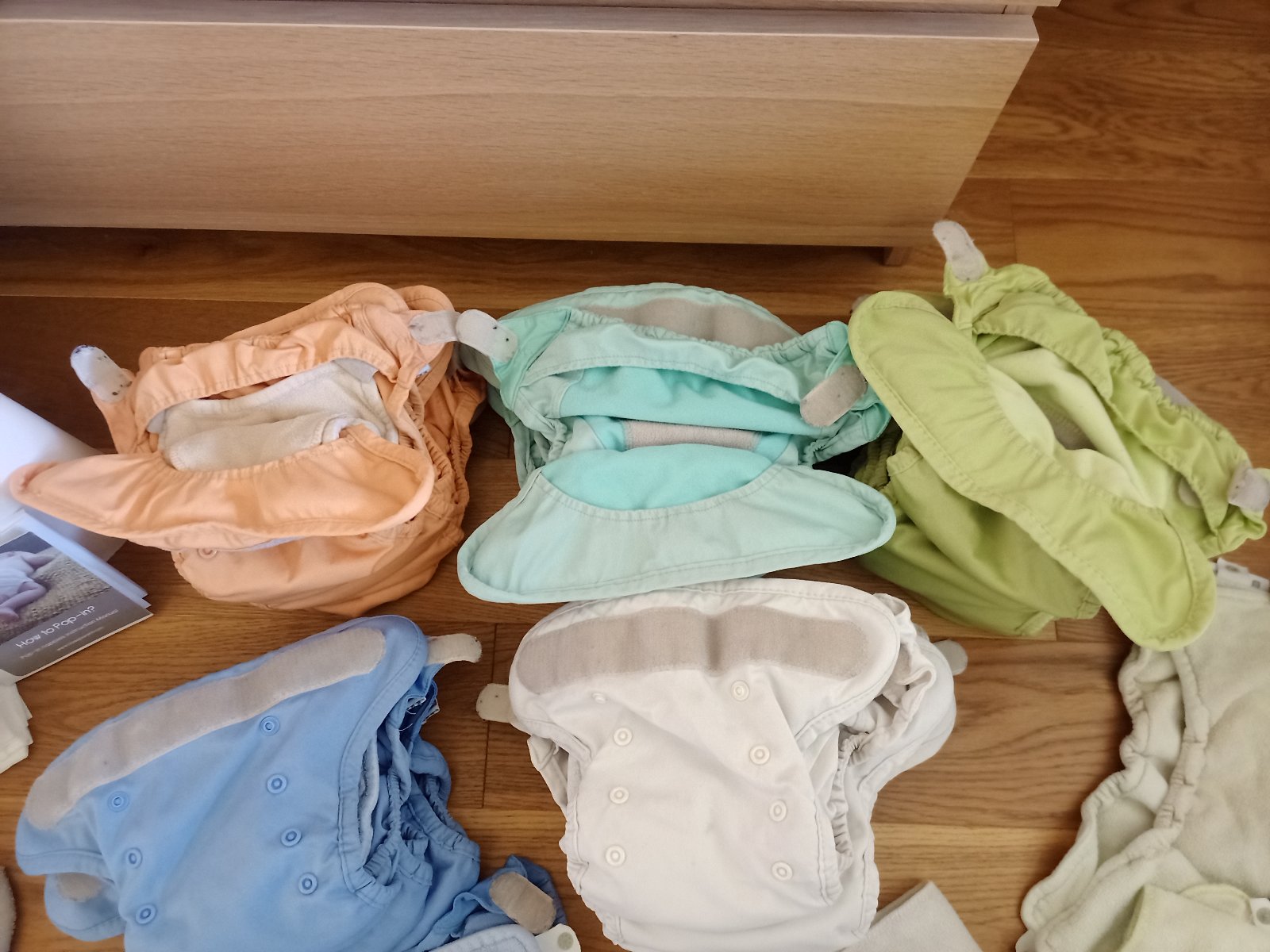 Veľkosť 3,5kg do 16+ kg. Používané látkové plienky takže aj stav tomu zodpovedá ale sú stále plne funkčné. Niektoré farby sú praním vyblednuté. Gumička na nepremokavej časti je stále pružná. Suchý zip bez poškodení stále drží. Pošlem v originál krabici aj s manuálom. Všetko tak ako je na fotke. Neviem najist z tyrkisovej farby vnutro. . Predávam iba celé ako na foto. (váha balíka 5kg)