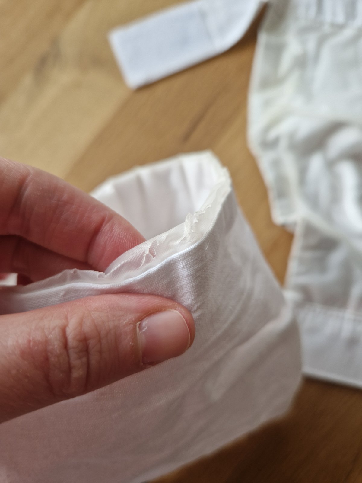 Zo skladovania sa trhá vnútorný materiál. Nebráni používaniu.