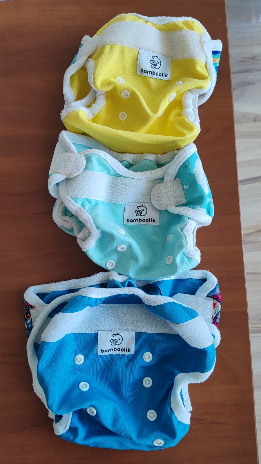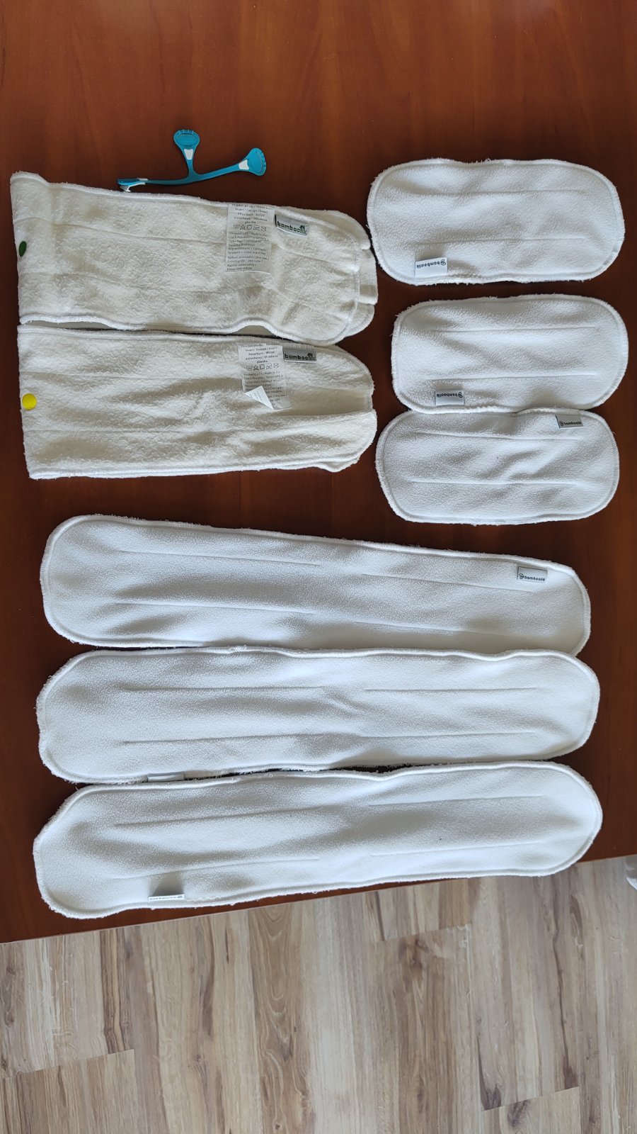 Predávam látkové plienky prevažne značky bamboolik, nevyužili sme. Sú tam vrchné nohavičky novorodenecké 2ks , väčšie 1 ks. All in one 3ks. Plus vkladacky ako na obrázku. Pribalim separacne vložky zadarmo. Možnosť kúpiť aj osobitne.