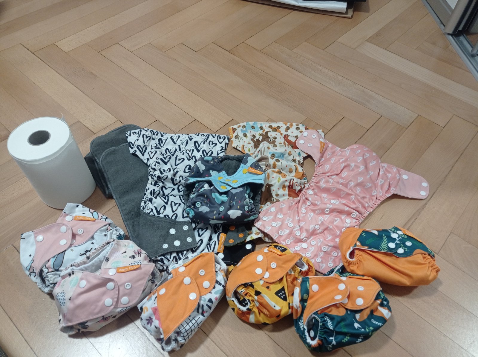 Balíček obsahuje 10ks plienka + 10ks vkladačka a otvorené balenie papierikov, ktoré som dávala na látku.
