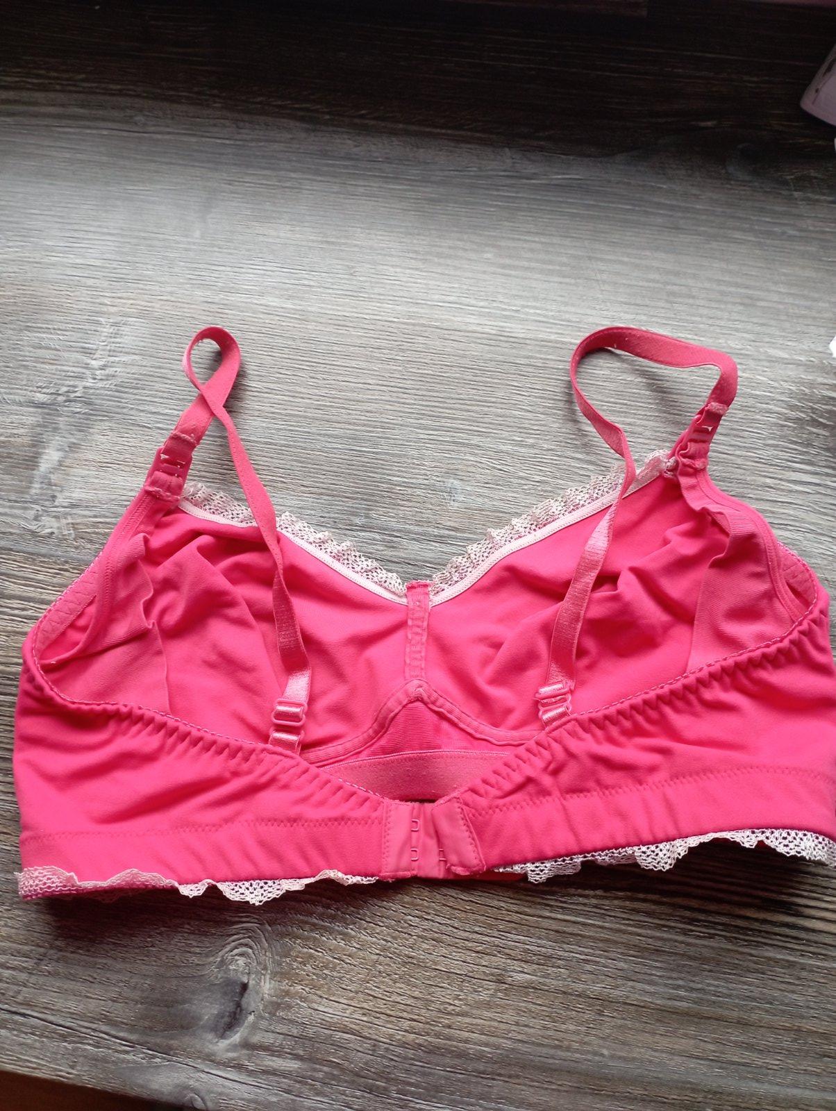 Pohodlná, praktická podprsenka na dojčenie zn bonprix. Veľkosť odhadom, udávaná je veľkosť S. Nosená, má žmolky, inak bez poškodení. 2€ alebo darujem k nákupu nad 4€.